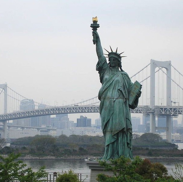 Odaiba '자유의 여신상'(위키미디어)'자유의 여신상'은 일본 동경에서도 볼 수 있는데 일본과 프랑스의 돈독한 관계를 기념하기 위해 세운 것으로 1998년부터 1999년까지 임시로 세워놓으려 했으나 워낙 인기가 좋아 2000년에 영구히 세워 놓기로 하여 오늘에 이르고 있다.