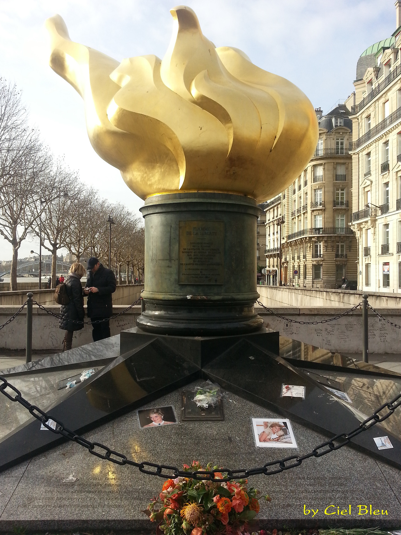 그러나 사실 이 횃불은 다이애나의 죽음과는 아무 상관없는 조형물이다. 1989년에 파리의 일간 신문 <인터내셔널 헤럴드 트리뷴(International Herald Tribune)>이 파리에서 영자신문을 발간한 지 100주년 되는 해를 기념하고자 조각상을 제작해 파리 시에 기증한 것이다. 그런데 1997년 다이애나 황태자비의 사고 뒤로, 본래 취지보다 그녀를 추모하는 의미가 더 두드러지고 있다. 안타까운 죽음이었기 때문인지도 모르겠다.
