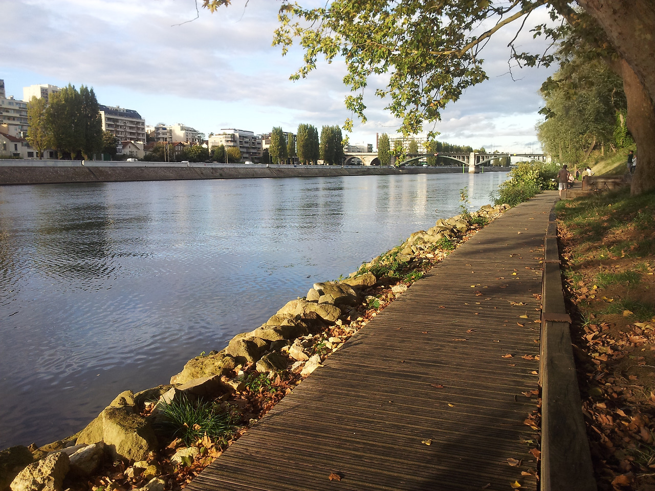 쇠라는 <그랑자트 섬의 일요일 오후>를 1884년부터 1886년까지 약 2년에 걸쳐 완성했다고 한다. 긴 세월이 흐른 만큼 그림 속 풍경과 지금 모습은 많이 달라져 있었다. 너무나 달라진 모습에 솔직히 쇠라가 이 작품을 그린 곳임을 알리는 표지판이 없었더라면 그곳이 어디인지 못 찾았을 수도 있다. 허기야 100여 년의 세월의 흐름을 간과하고 그림 속 경치를 상상한 내가 무리였다. 표지판의 도움으로 그 장소를 찾았을 때, 나는 쇠라와 함께 같은 장소에 서 있다는 것만으로 감동받고 만족하기로 했다.