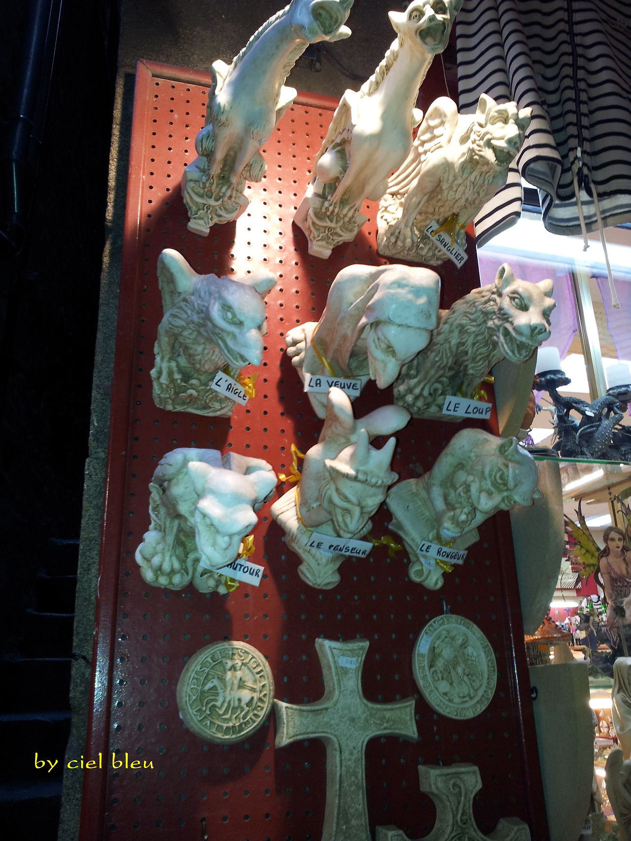 수도원까지 이르는 길은 중세 성벽 안 도시의 모습을 여기저기 보여주고 있는데 기념품 가게의 가고일 장식물은 언제 봐도 섬뜩하다.