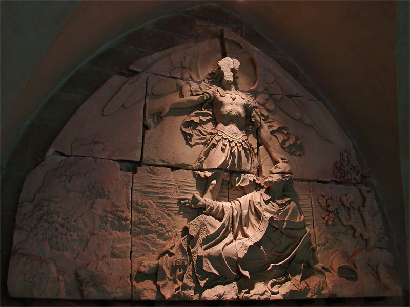 수도원 안에는 금욕과 수행을 위한 최소한의 시설만 있는 듯 보인다. 수도원 창건의 주인공인 미카엘 대천사는 늘 그렇듯 사탄인 용을 물리치는 모습으로 당당하게 조각되어 있고 고딕 양식의 예배당은 장엄한 모습으로 방문객들을 맞아 준다. 한편엔 속세와 단절된 수도원을 입증이라도 하듯이 절벽 밑의 물자를 수송하는 수단인 커다란 도르래가 설치되어 있었다. 이것을 통해 식료품과 물자를 수도원 안으로 올렸다고 한다.