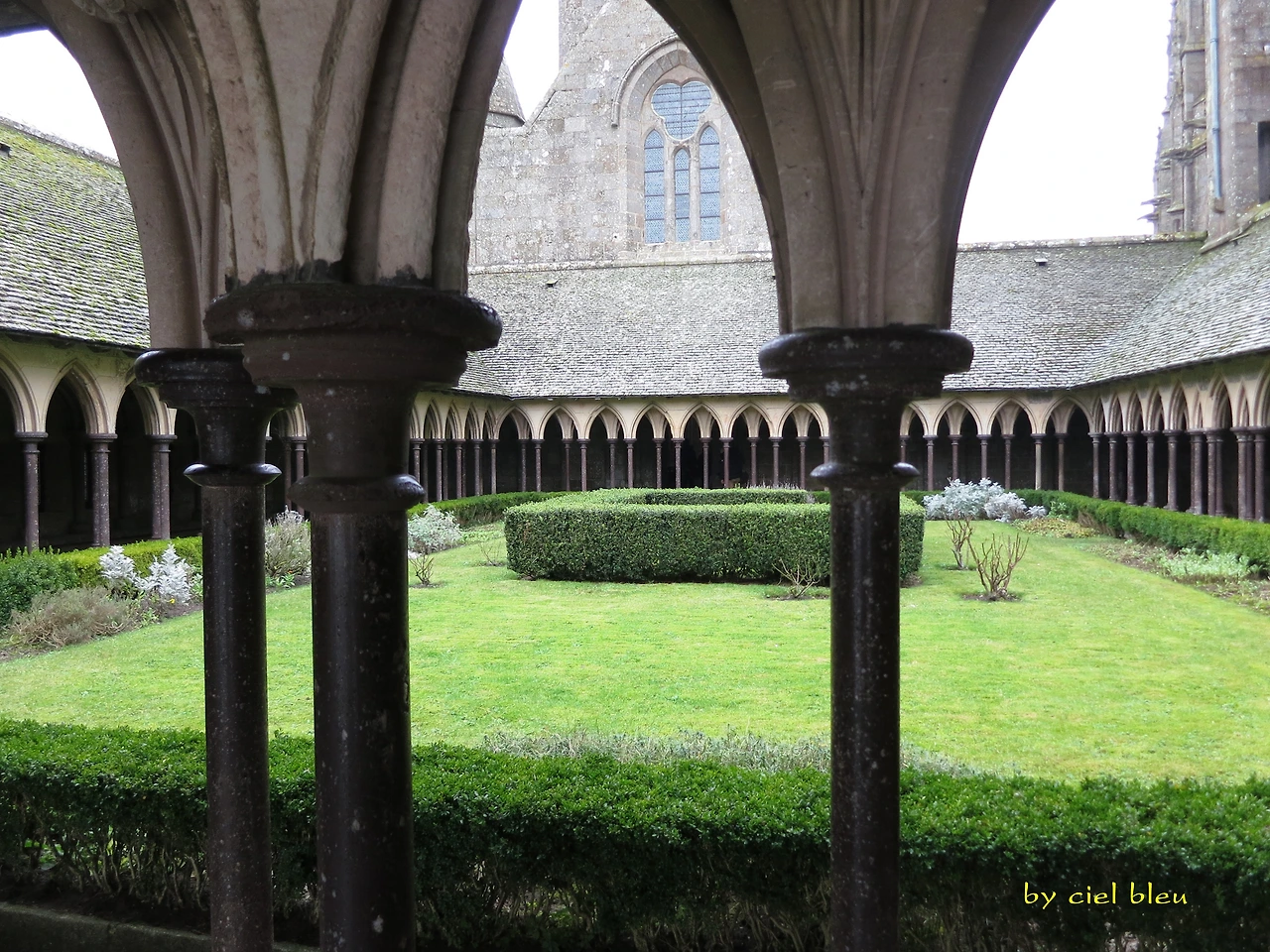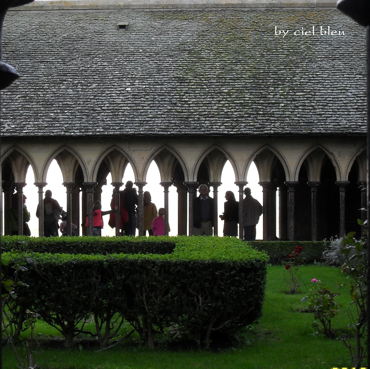 수도원 안에는 공중 정원이라 불리는 아름다운 정원이 있는데 유럽의 어느 수도원에서도 쉽게 볼 수 있는 회랑(cloister)으로 장식된 아름다운 곳이다. 그중 벽 한 면이 유리로 장식되어 있어 마치 공중에 떠 있는 듯한 아찔함을 주고 있다. 가까이 가기에도 겁이 나는 이곳이 아마도 공중 정원이라 불리게 된 요인이 아닐까 싶다. 그 옛날엔 이 부분을 어찌해 놓았을까? 잠시 생각만 해도 아찔하다. 절로 수양이 될 듯하다. 또한 이 곳은 삭막한 수도원 안의 경이로운 곳이란 뜻으로‘메르베이유(merveille:경이로움)’라고도 부른다. 이곳의 회랑은 수도승들이 명상과 영혼의 양식을 구하는 곳으로 사용된 그들의 실제 주거 공간이었다고 한다.