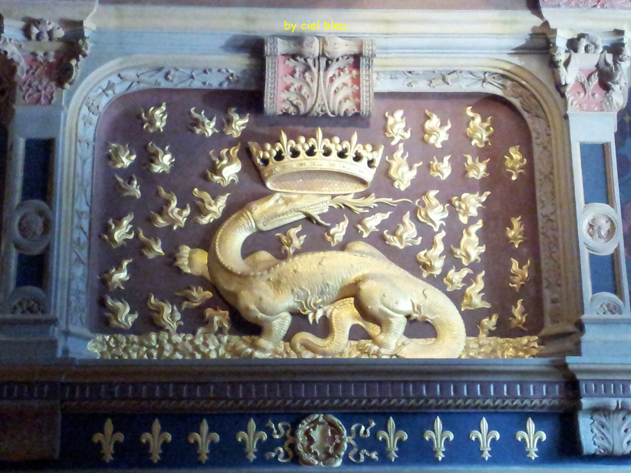 프랑수와 1세의 문장은 불을 내뿜는 도마뱀인데 의미는 ‘좋은 불은 뱉어 내고 나쁜 불은 삼켜 버린다: nutrisco et extingo’는 뜻이다. 도마뱀은 불사조인 휘닉스와 같은 의미로 해석되곤 하는데 불에 대항하는 이런 동물은 삶에 대한 열정과 영광을 나타낸다고 한다.