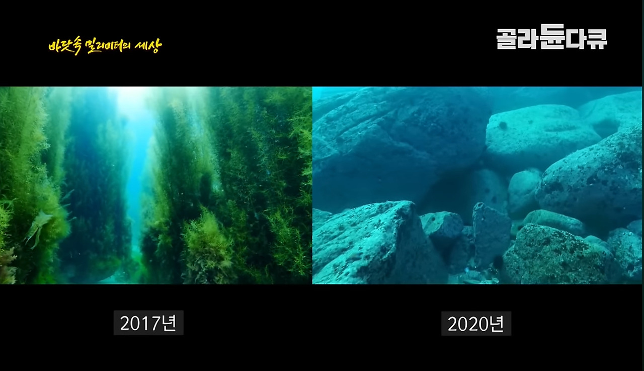 두줄베도라치는 운이 좋았지만, 도루묵들은 그렇지 못했다. 울진 앞바다 도루묵들은 심해에 살다가 겨울이 되면 산란을 위해 수면 가까운 곳으로 이동한다. 보통은 모자반 숲 사이에 알을 붙이는데, 지난 몇 년 사이 기후변화로 바다의 온도가 올라가 한류성 수초인 모자반이 모두 사라졌던 것이다.