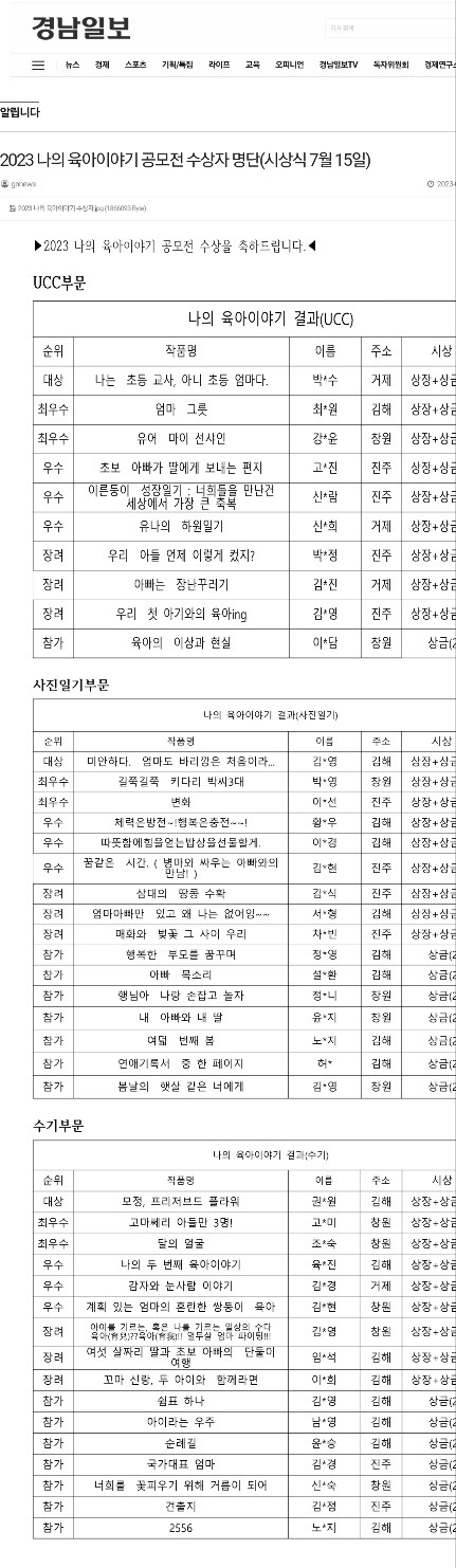 얼마 전, 육아 수기를 공모한다기에 한번 응모해보고 싶었다. 예전에 썼던 글을 조금 다듬으면 될 것 같았다. 꼭 상을 받고 싶어서라기보다 마치 영어를 좋아해도 토익 한 번 쳐보지 않은 것처럼 찜찜한 마음이 늘 있어왔는데 객관적인 평가도 한번 받아보고 싶었다. 그런데 그게 덜컥, 상을 타게 되었던 것이다.