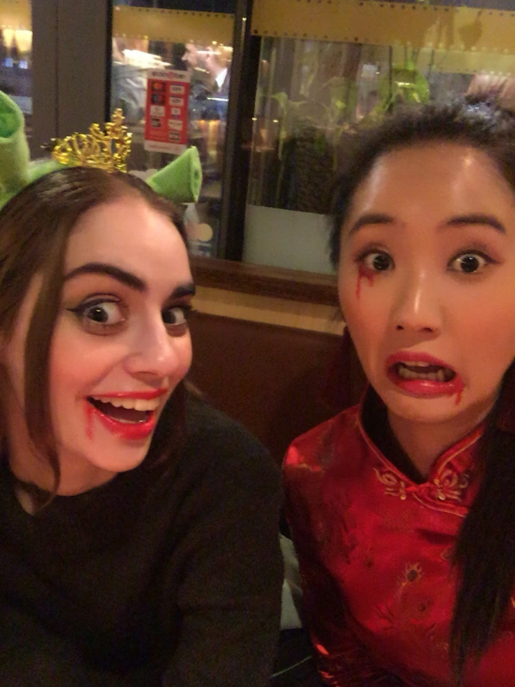 제나와 마리아는 내게 재미있게 분장을 하고 할로윈을 즐기자고 했어.