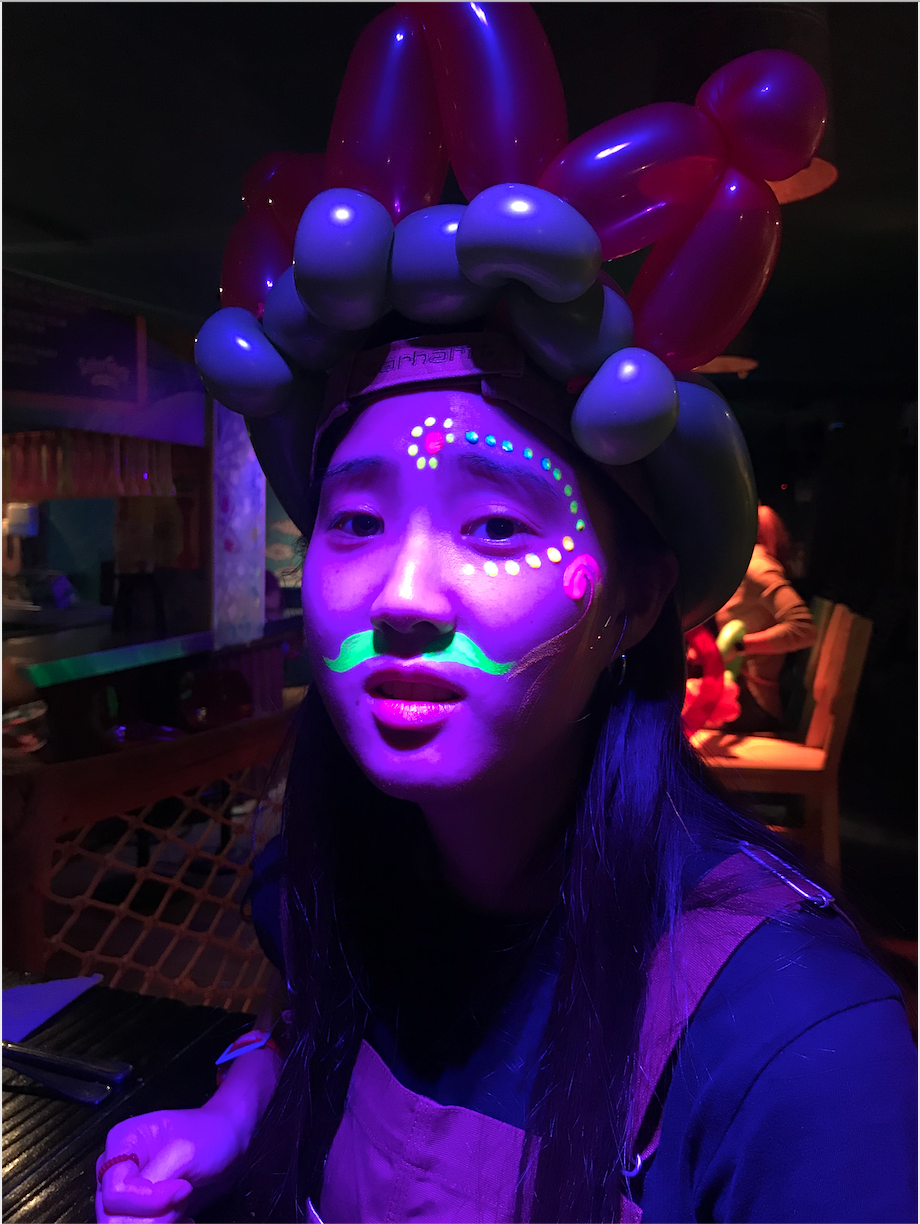 파티 분위기가 물씬 나는 이 곳에서 나도 페이스 페인팅이 하고 싶어 졌어.