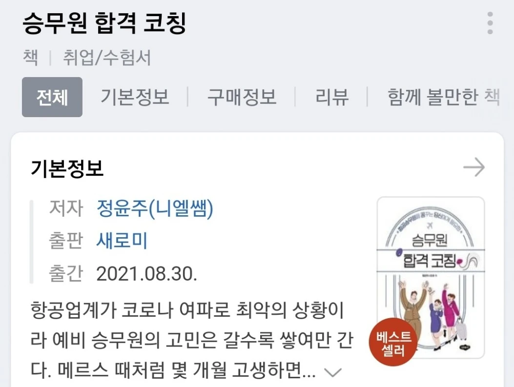 2021년 9월 16일 네이버에서 "승무원 합격 코칭" 책을 검색하니 못 보던 빨간 글씨가 보였다. 빨간색으로 베스트셀러라고 쓰여있었다. 설마... 진짜??ㅜㅜ이런 일이 나에게???