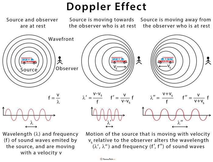 들려 오는 sound 나 wave는 듣는 사람에 거리와 속도에 따라 상대적으로 바뀌는 것을 계산 하는 공식. 1850 Austria에 수학자 Christian Doppler 가 1840년 경 해 놓은. 멀리서 움직이는 소리에 대한 계산.
