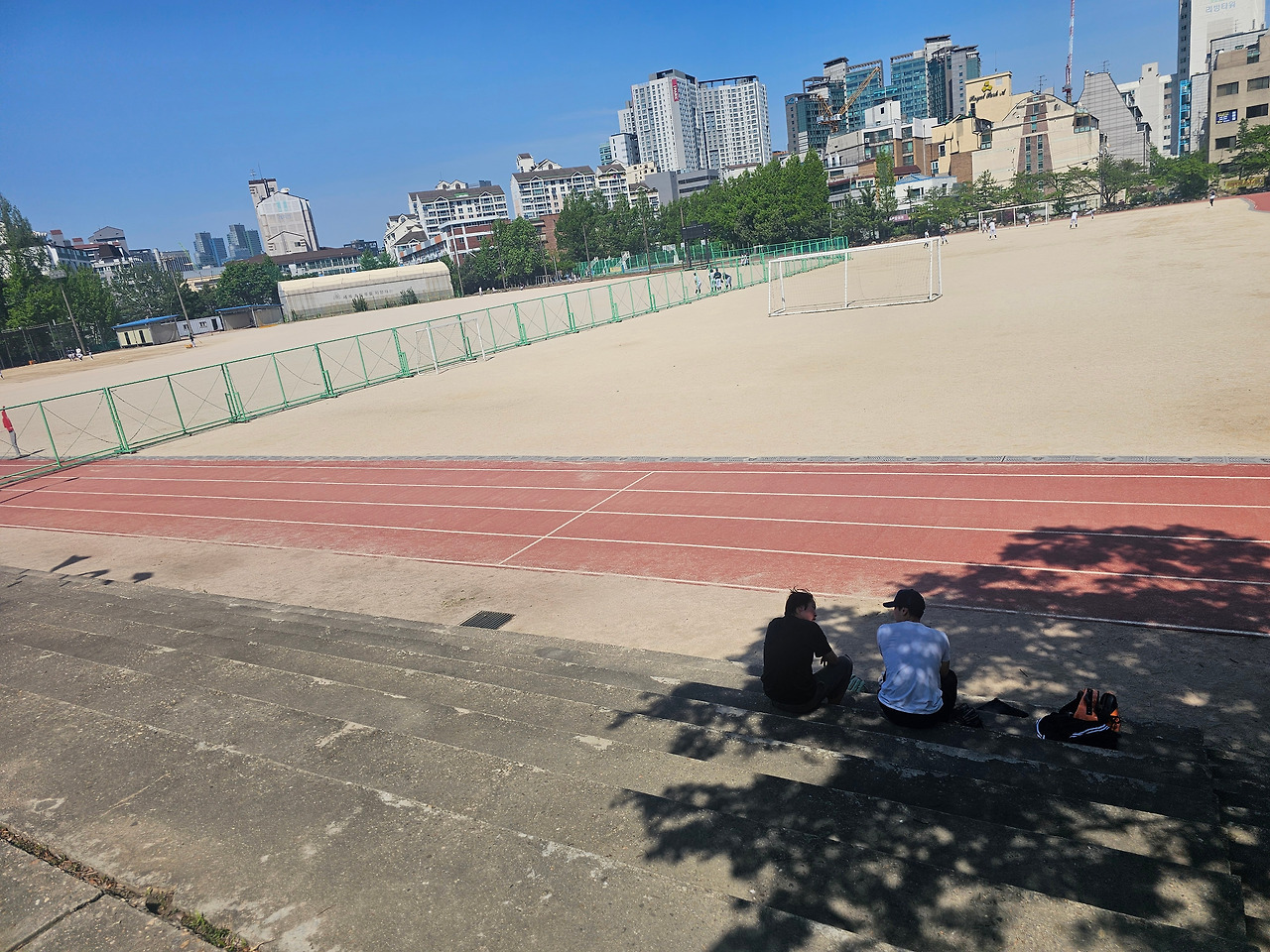 화창한 5월 모의 고사 일정으로 갑갑한 수업 시간 사이 사이에, 운동장 맑은 하늘과 함께 박수 쳐가며 짧은 점심 시간에 관중들이었다.