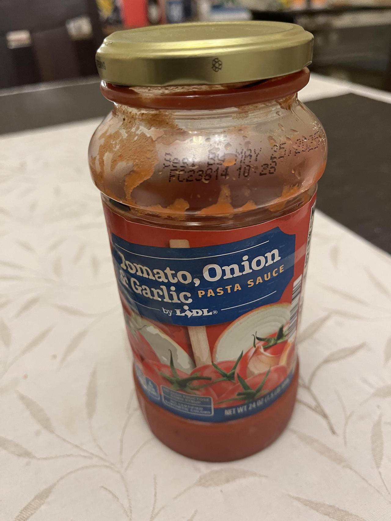 수퍼파켓에서 사온 파스타 소스 병을 냉장고에서 꺼내
