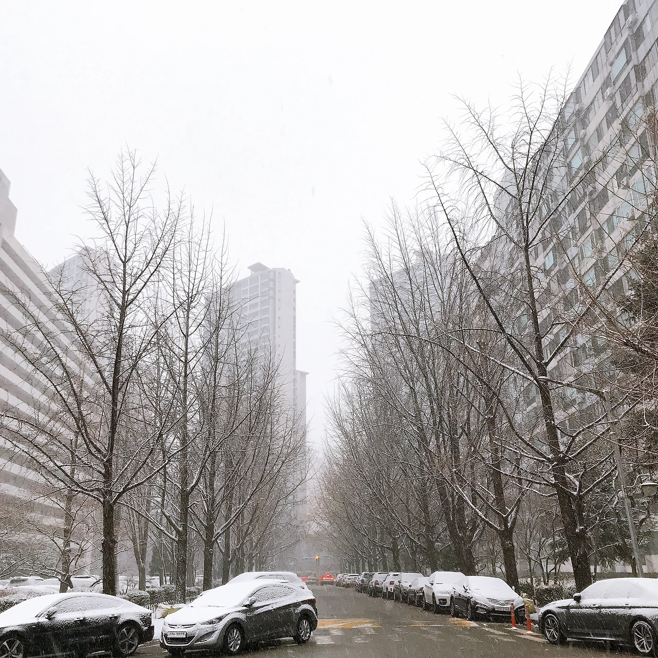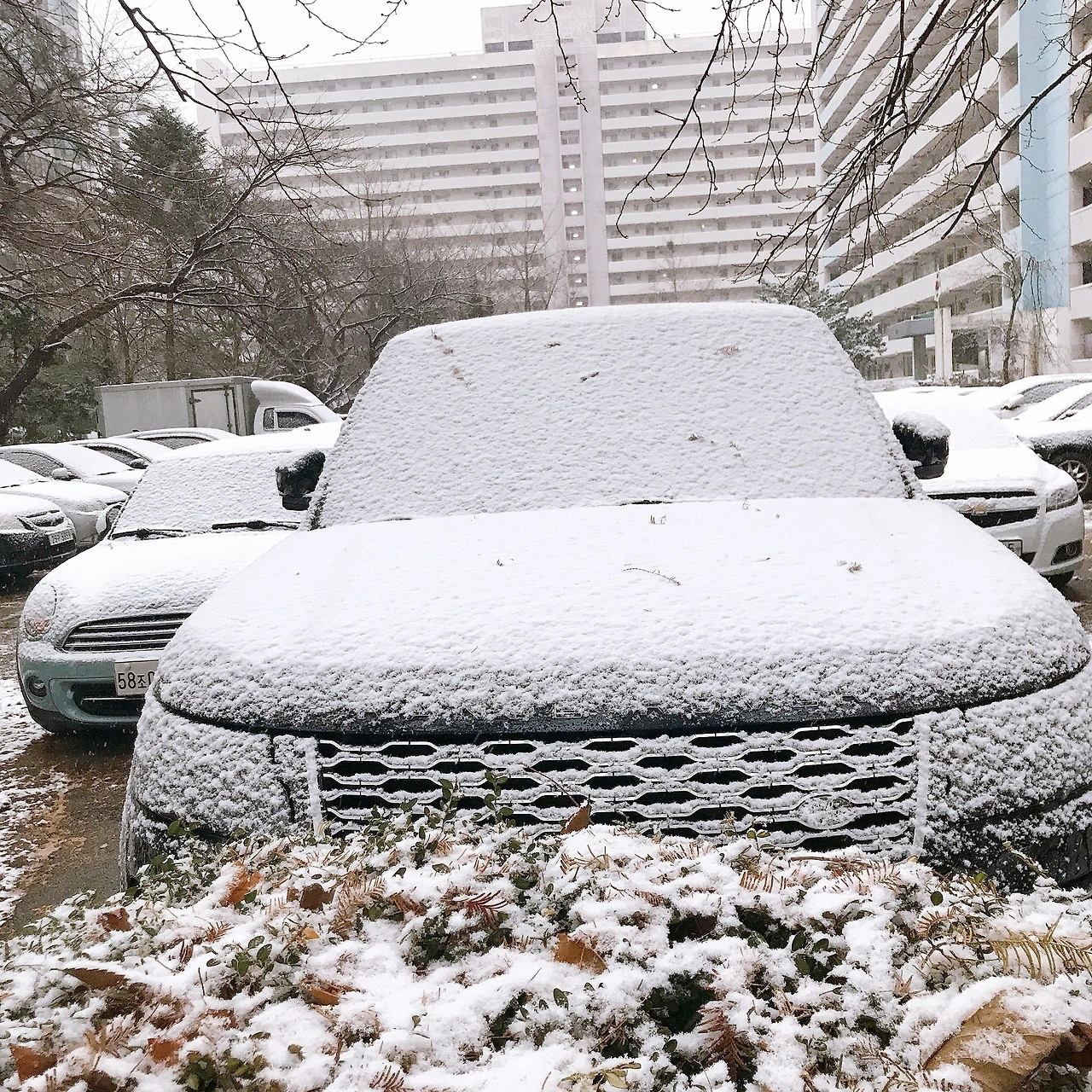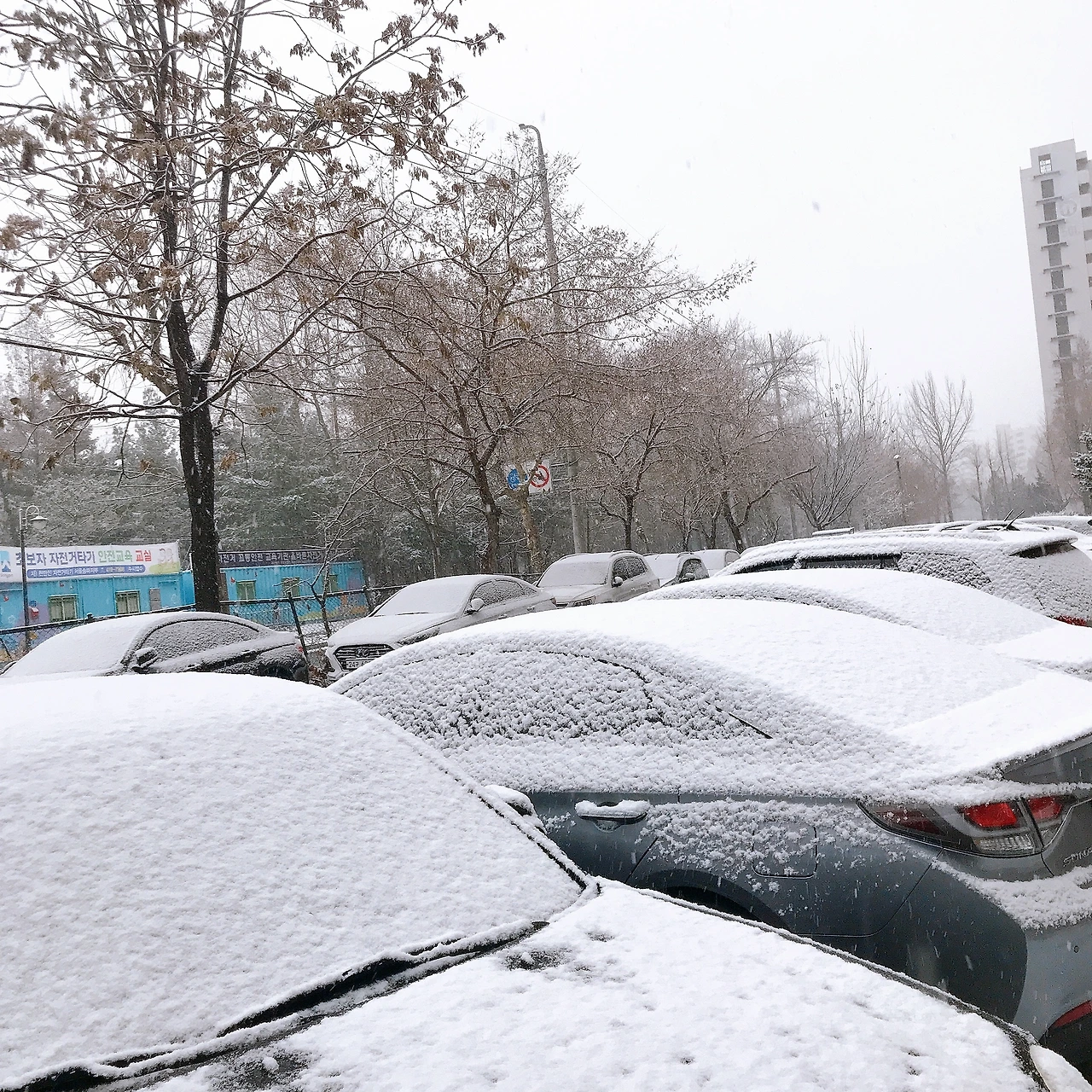 서로 다른 기종 차 위에 얹힌 눈이 모두 흰둥이로 만들어주어 재밌다.