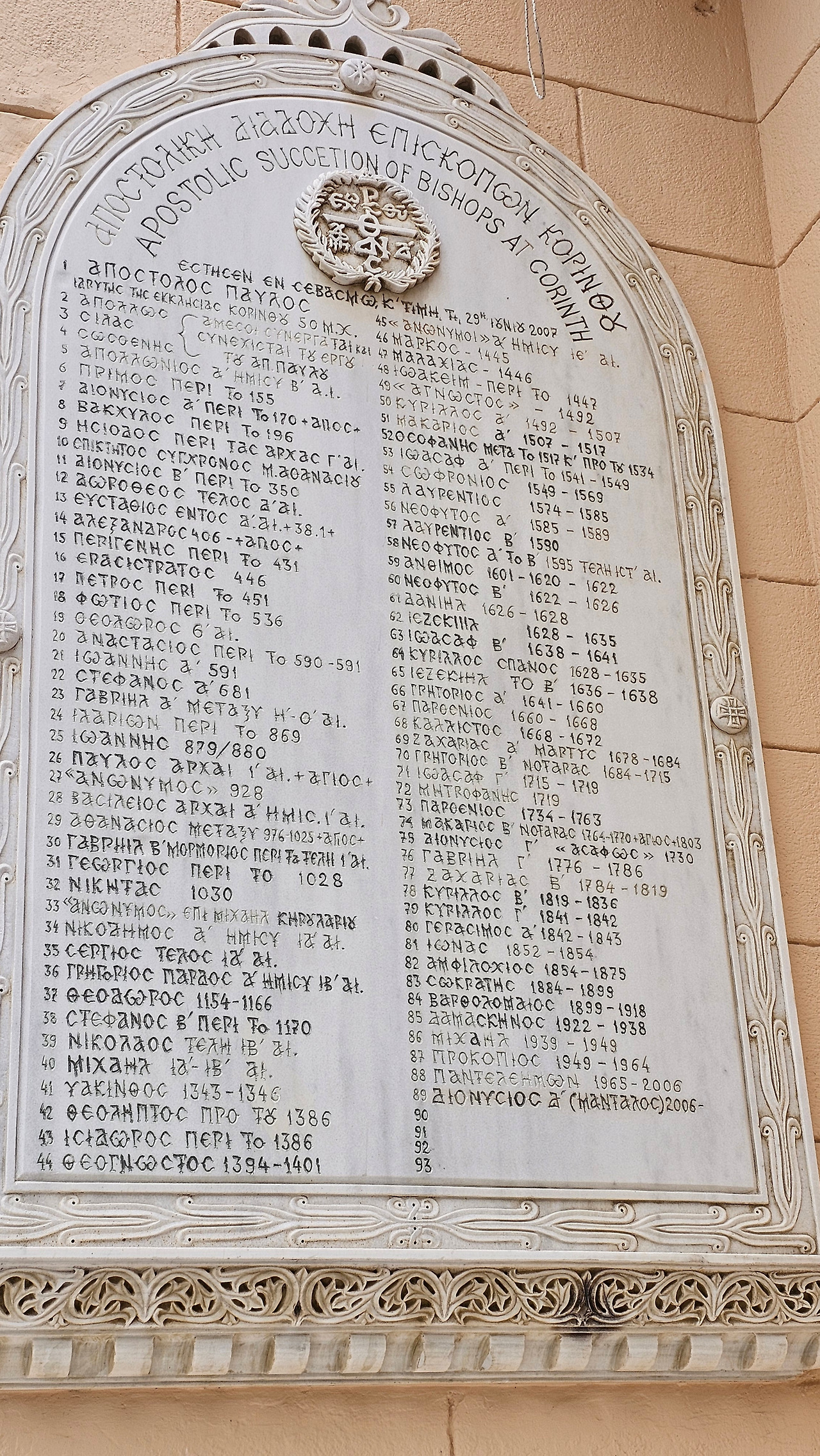 1대 사도바울로부터 아볼로, 소시데오로 이어지는 고린도 주교 계보(왼)와 고린도전서 12:27-13:8 (우)