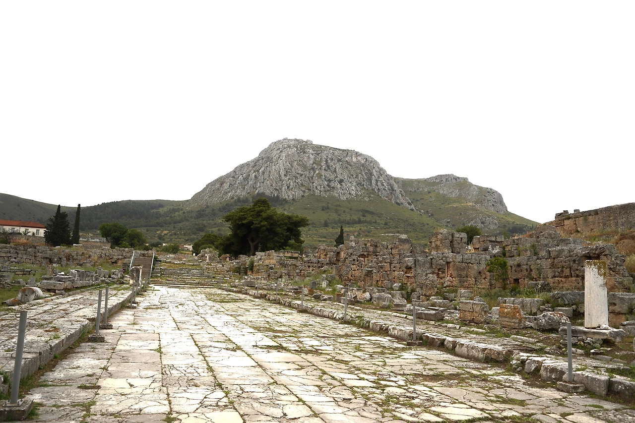 운하를 뒤로하고 고린도 고대도시(Ancient Corinth)로 향하는 길에는 소박한 상점들이 늘어서 있었다. 레스토랑과 기념품 가게, 슈퍼마켓, 약국이 어우러져 평범한 일상이 흘러가는 모습이었다. 그런데 저 멀리 해발 575미터에 솟은 아크로고린도(Acrocorinth) 언덕을 올려다본 순간, 이곳이 평범한 곳이 아니라는 사실이 단박에 와닿았다.