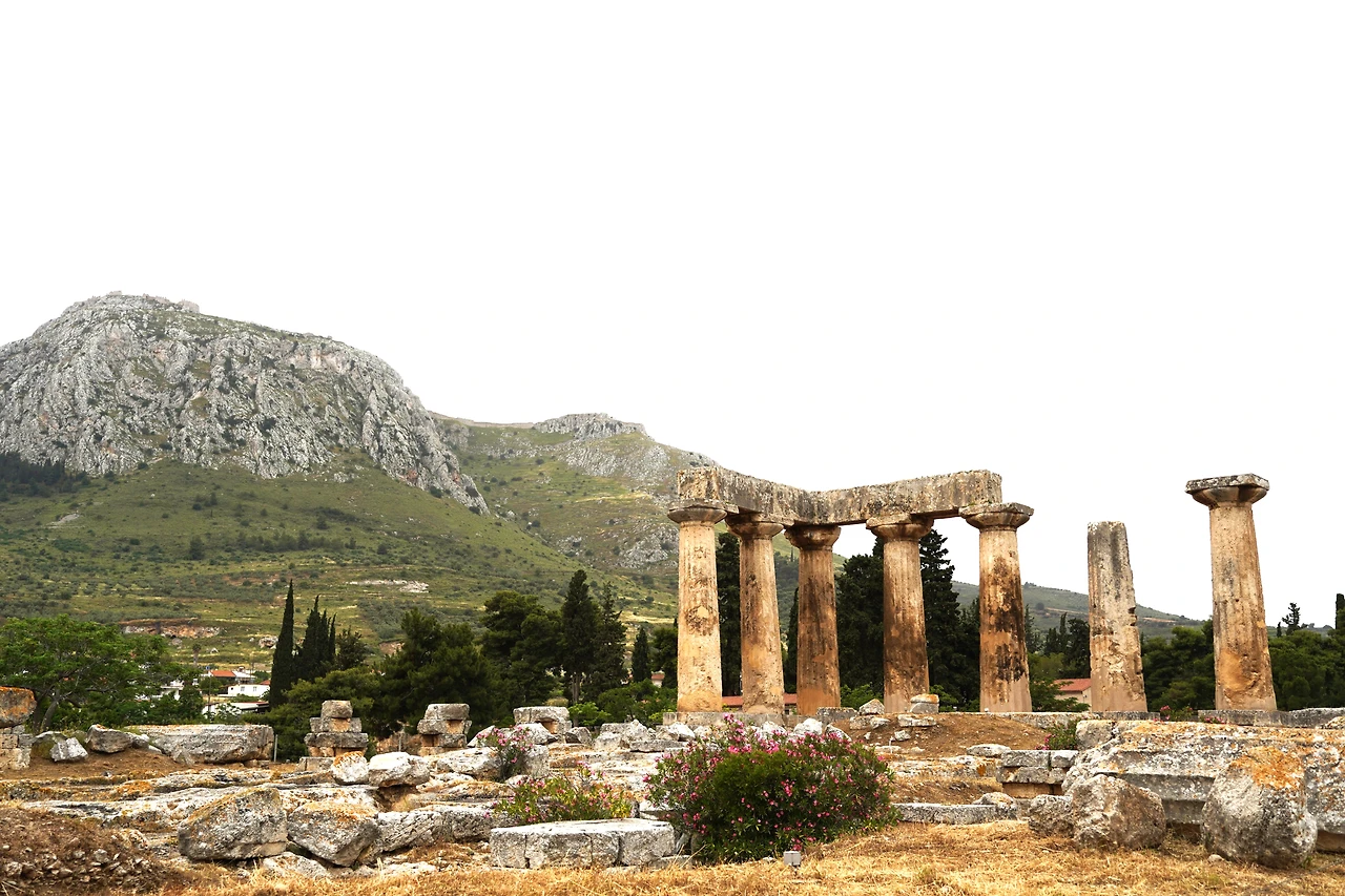 아폴론 신전 기둥 뒤로 아크로고린도 산이 보인다.