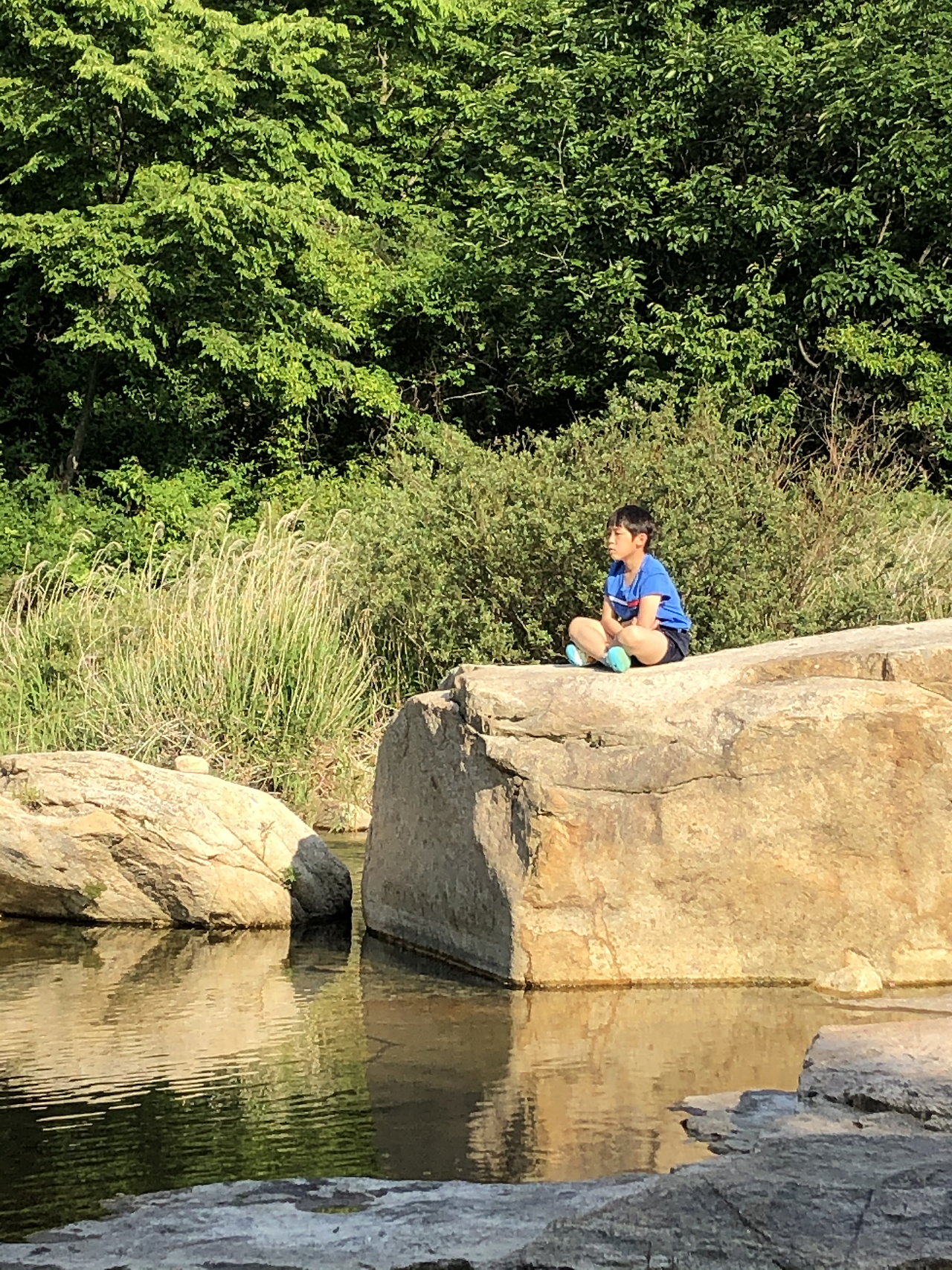 계곡은 크기가 다양한 돌이 있고 물의 깊이도 달라서 발달장애 아이들에게 시지각과 신체 운동의 협응에 도움이 된다. 뭐 그런 거 다 생각 안 하더라도 더위에 계곡과 수박이면 더 이상 바랄 것이 없다. 애나 어른이나.