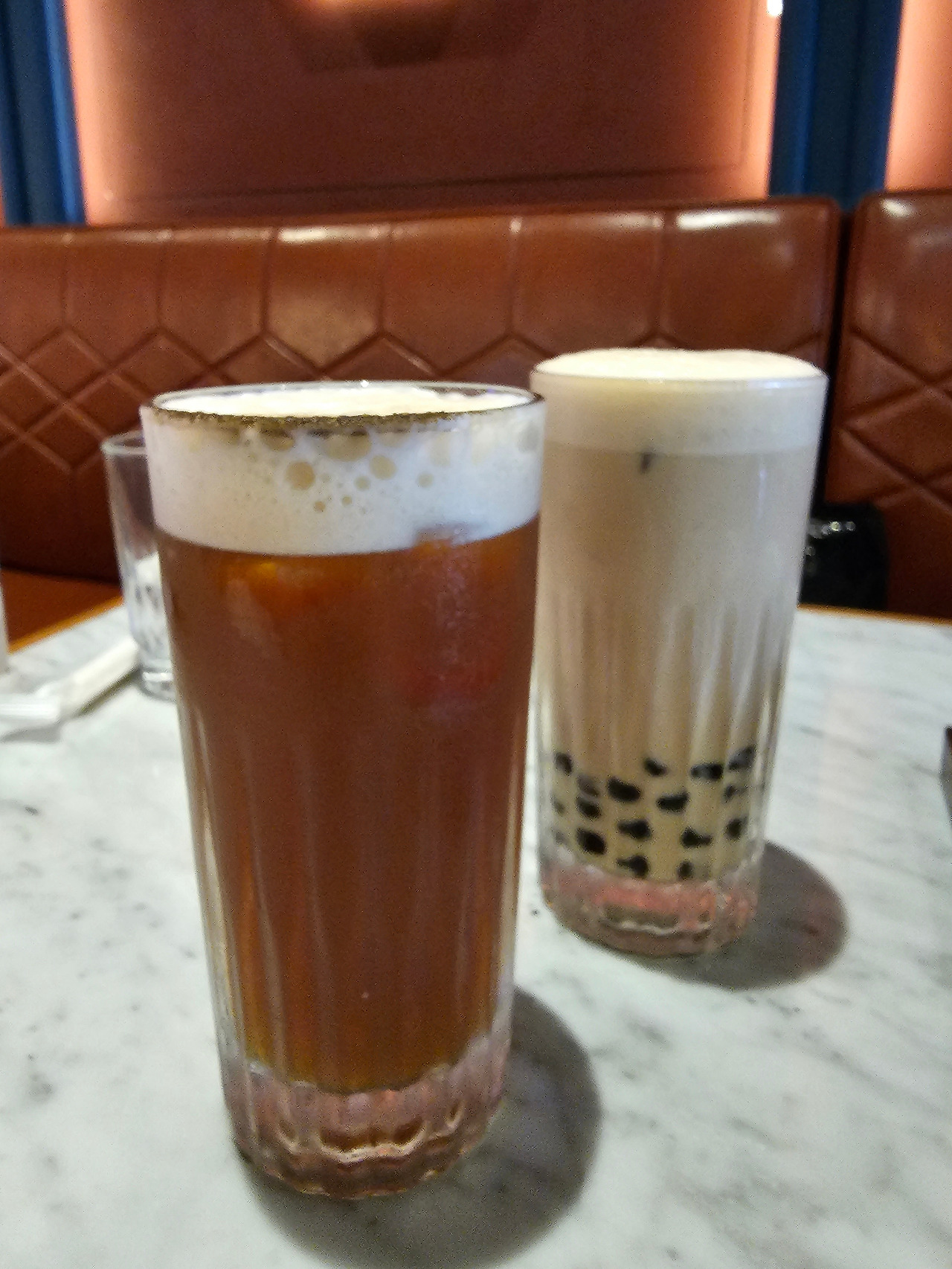 주문한 음료는 밀크폼이 올라간 밀향홍차와 쩐쭈나이차