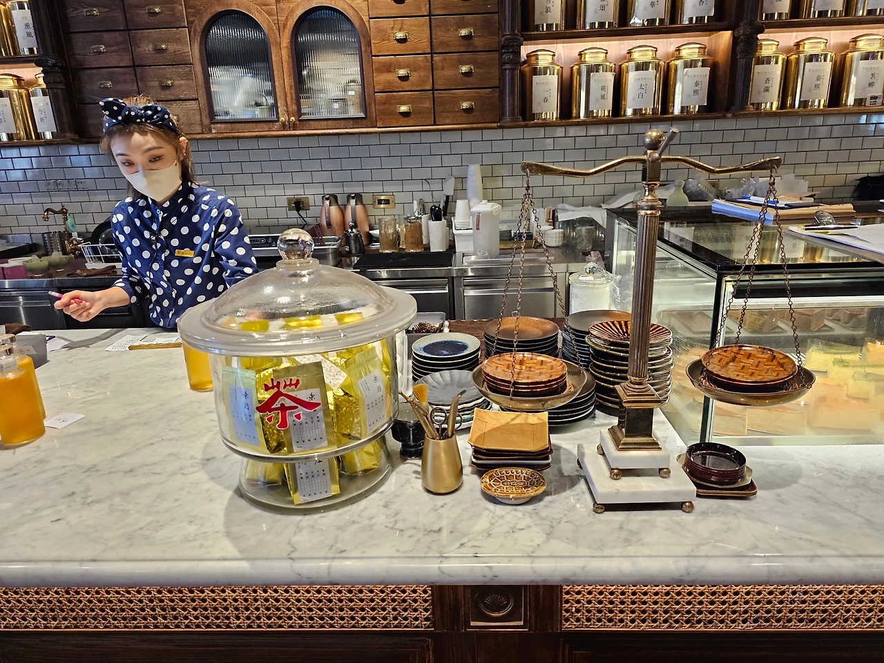 메뉴를 보고 식사와 차를 주문하면 웰컴티를 한 잔 준다. 그냥 식사하러 왔다가 차가 맛이 있어서 찻잎을 구매했다는 후기들도 종종 보인다.