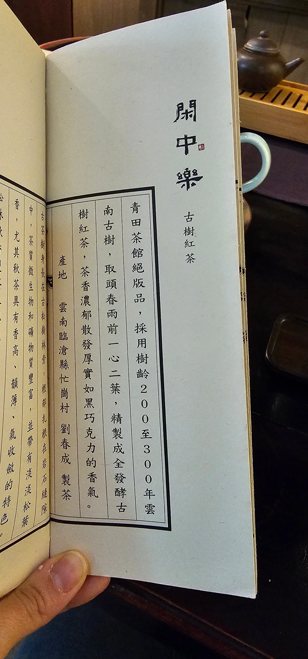 대만의 우롱차들과 보이차, 운남 홍차, 운남 백차 등이 메뉴에 있다. 직원에게 요청하면 찻잎의 향을 시향 해볼 수도 있다.