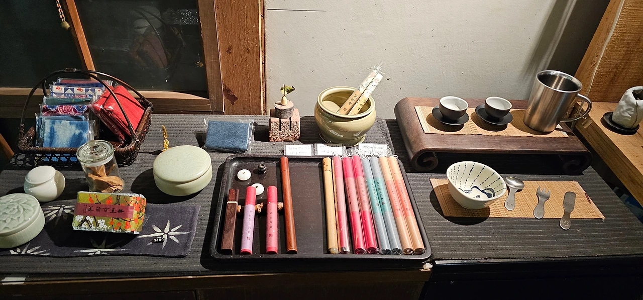 차를 한참 마시고 계산하고 나가는 길에 보면 요롷게 마지막까지 눈을 사로잡는 다구들이 있다. 마셨던 찻잎 구매도 가능하며, 향, 차도구 등이 구매가 가능하다. 심지어 비새차(시합차)도 판매하고 있어 눈을 반짝이며 구경하기도 했다.