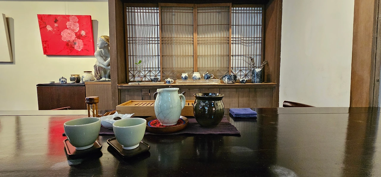 찻집 안으로 쓱 입장하면 조용한 실내 분위기에 나도 모르게 '정숙'해진다. 뭔가 남의 집에 초대받은 미묘한 느낌도 들고. 내부는 생각보다 다소 더 넓기 때문에 한번 또 놀라고 만다. 오래된 나무 창살 사이로 오후의 햇빛이 스르륵 스며들고 찻집 안은 차향기와 향 냄새가 은은하게 깔려 있다.