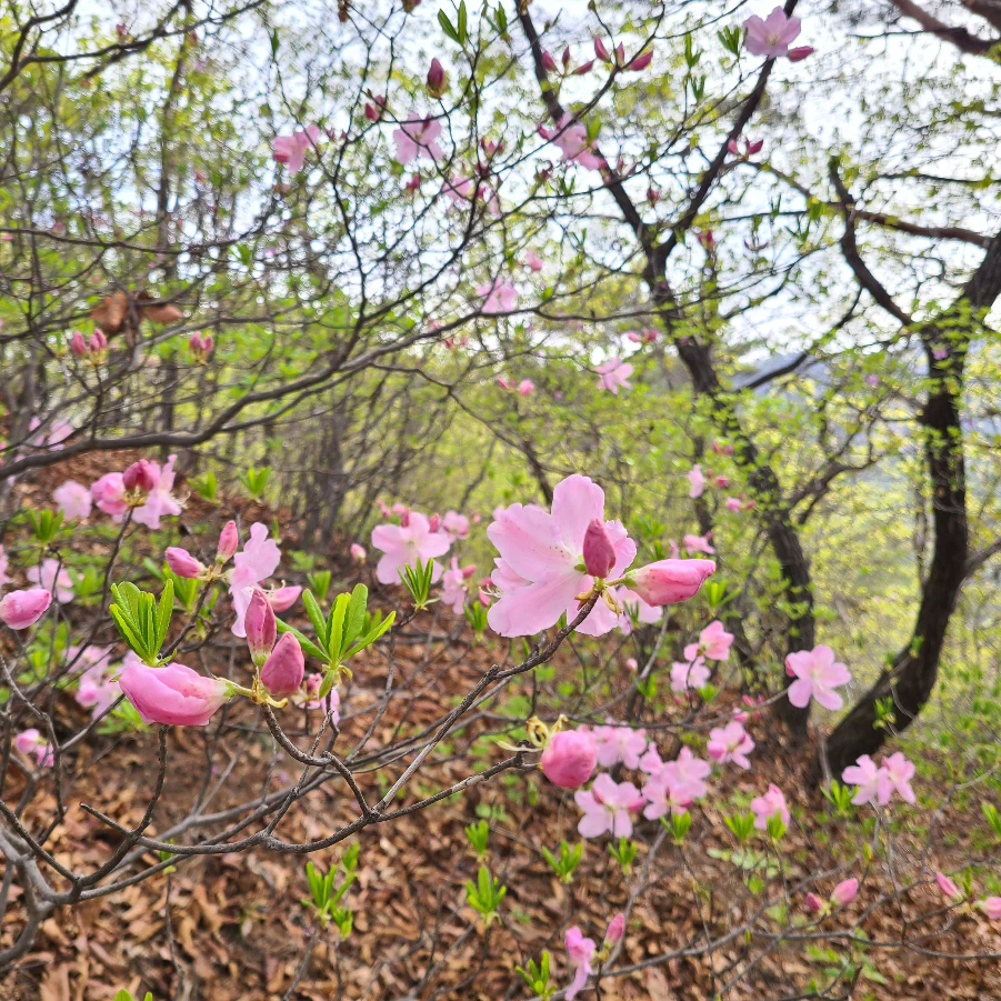 4월 초부터 내내 십보일꽃였다. 마음을 내내 빼앗겼다. 4월 중순의 봄산은 연둣빛 물감을 짜서 물에 풀어내는 중이었다. 눈높이에 연분홍빛 꽃들이 보였다. 안녕, 너는 진달래니 철쭉이니. 눈 아래에 노란 꽃 보라꽃도 보였다. 안녕, 너는 애기똥풀 같고, 저는 제비꽃 같은데 맞니? 꽃을 좋아만 하지 정확한 이름조차 모르겠다. 나는 꽃과 하늘을, 그는 돌과 나무를 보며 감탄했다. 시선이 향하는 곳은 달랐지만 걸음은 한 곳으로 내딛다 보니, 오호라, 벌써 2봉이다. 벤치도 있다. 친절한 산이네.