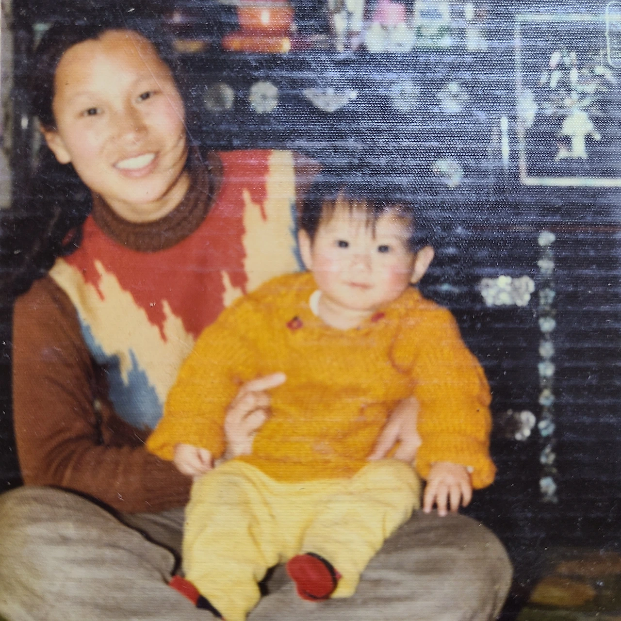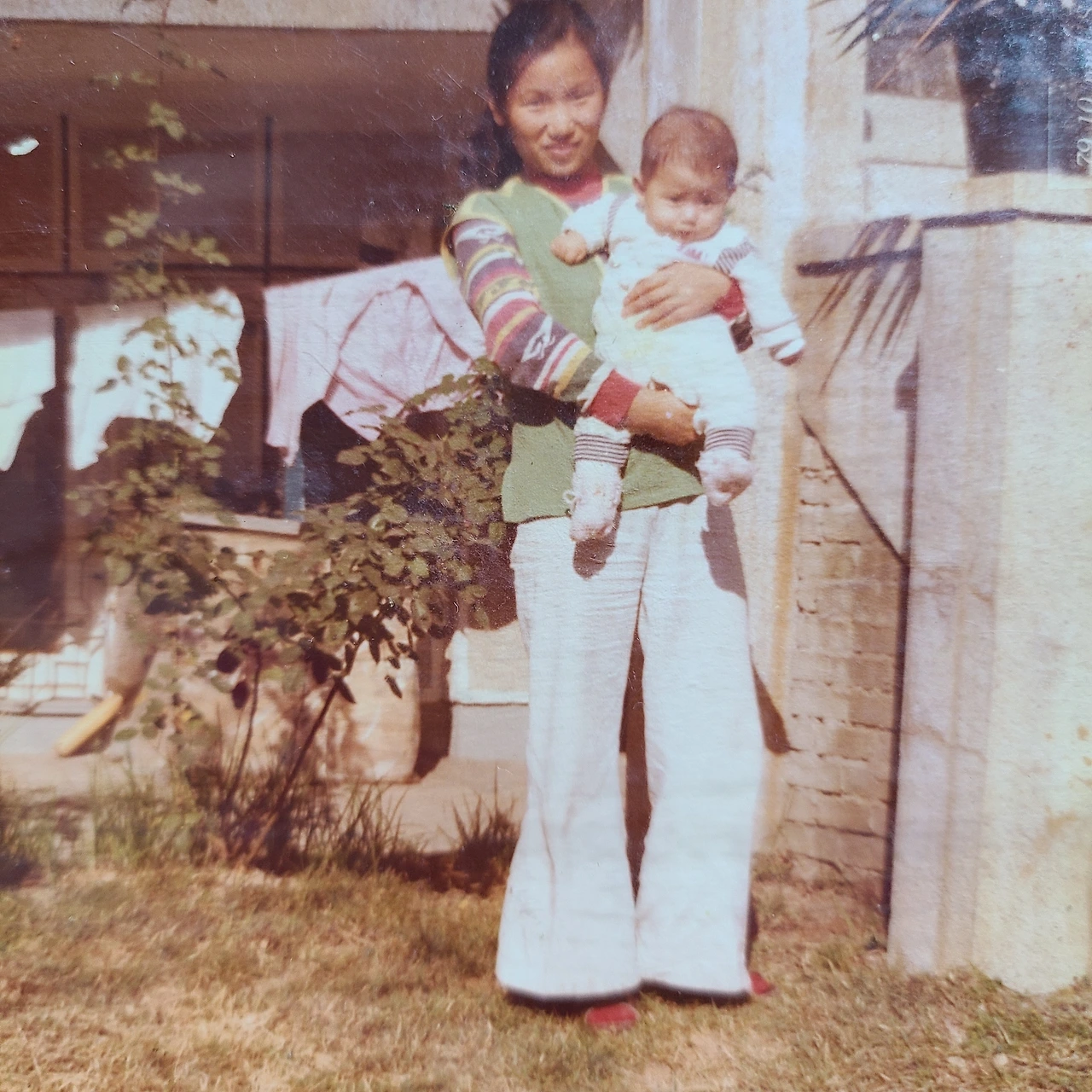 40여 년전의 이여사와 씬디 모녀. 애기가 애기를 안고 있다.