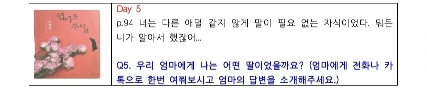 <엄마를 부탁해> 질문나누기 5