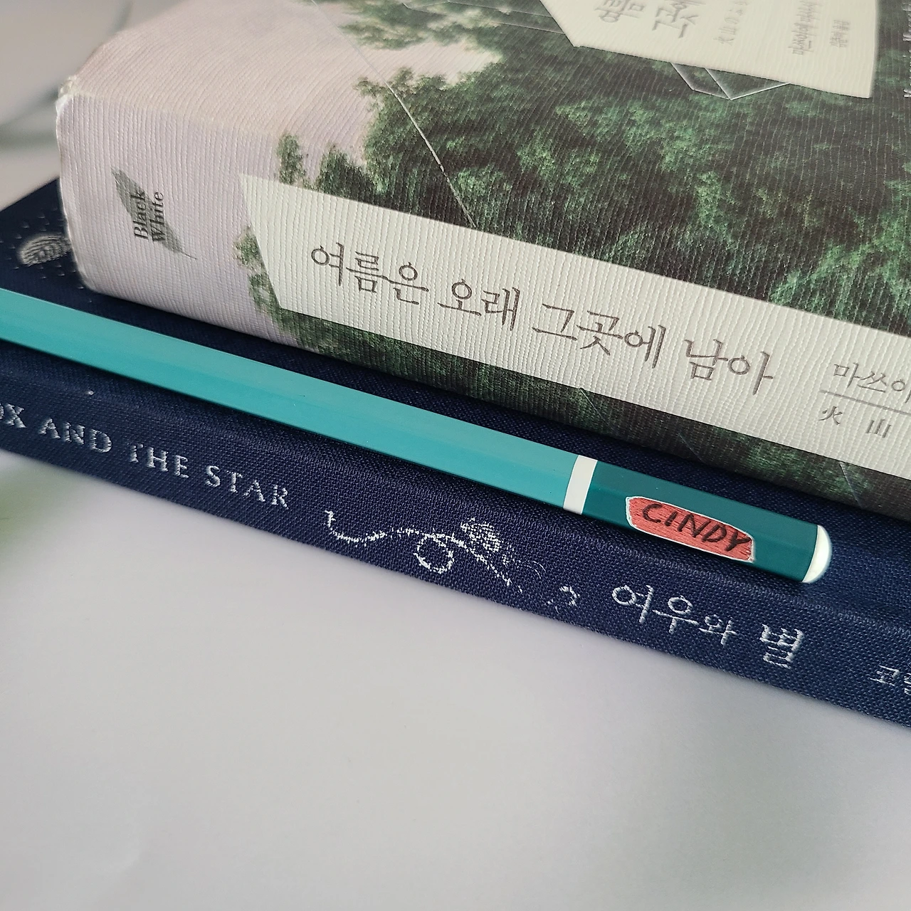 주욱 밀려가던 연필의 그어지는 맛이 좋았다. 위쪽 청록색 부분을 칼로 깎아서 나뭇결이 드러나게 하고, 거기에 아름답게 'CINDY'라고 적었다.