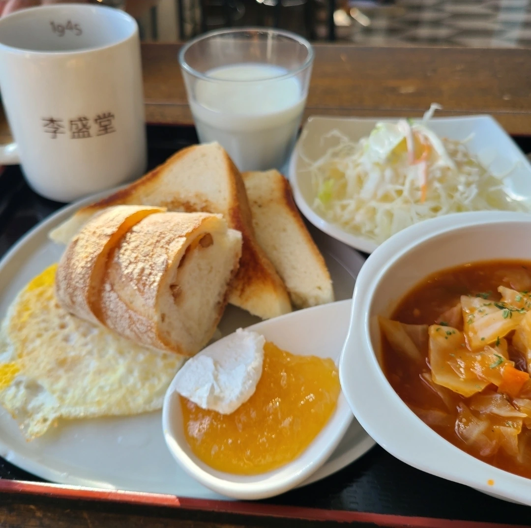 오늘 아침 군산 이성당. 커피 우유 식빵 호두바게트 토마토 스튜 사과잼으로 구성된 브런치는 맛도 양도 딱 좋았다. 쟁반에 가득 담겨오자마자 순식간에 동나는 단팥빵과 야채빵 몇 개를 담았다.
