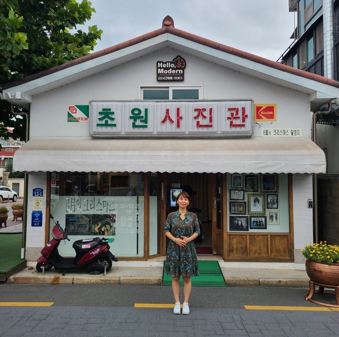 8월의 크리스마스의 촬영지 초원 사진관 앞에서 사진을 찍었다. 배에 한껏 힘을 주었다.