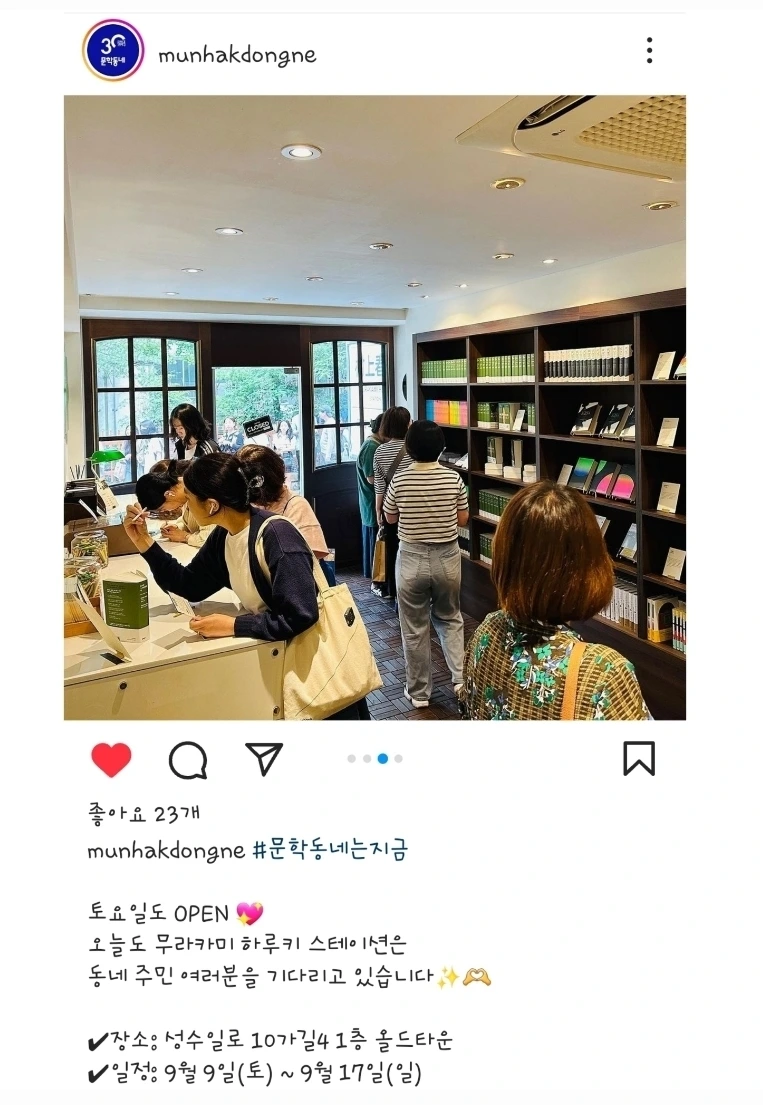 통행증 발급 기계가 고장 나 잠시 기다리는 동안 찾은 주변 식당에서 순살로 끓인 닭볶음탕을 호호 불어 맛있게 한 입 먹던 만족감을. 통행증을 받으러 다시 들렀을 때 책갈피를 하나 더 받고 싶다 부탁했을 때 건네주던 곱슬머리 흰 얼굴 스태프의 사람 좋은 미소를. 셀카 한 장을 안 찍었구나 아쉬웠던 차에 문학동네 sns에 올라온 사진에서 내 뒷모습을 발견한 안도감을.