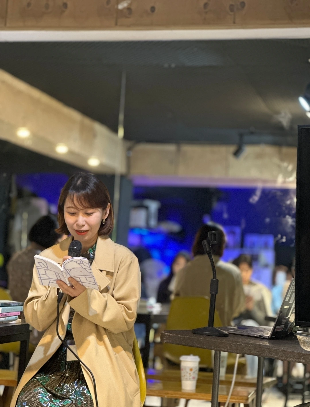 작년에 이어 낭독하겠냐는 질문에 꼭 다시 읽고 싶었던 이유 있는 욕망을. ‘마이 그린 드레스’를 낭독하려 그 초록 원피스를 입고 왔고 ‘마이 그린 드레스 2’를 쓰겠다고 발표하며 다독인 다짐을. 그 다짐에 미소로 응원해 준 여러 반짝이는 눈들을. 글에 나온 작가가 그 작가 맞냐는 질문에 오답에는 눈 맞추며 웃었고 정답에는 눈을 피해 미소 지었던 내 맘 속 딩동댕을.