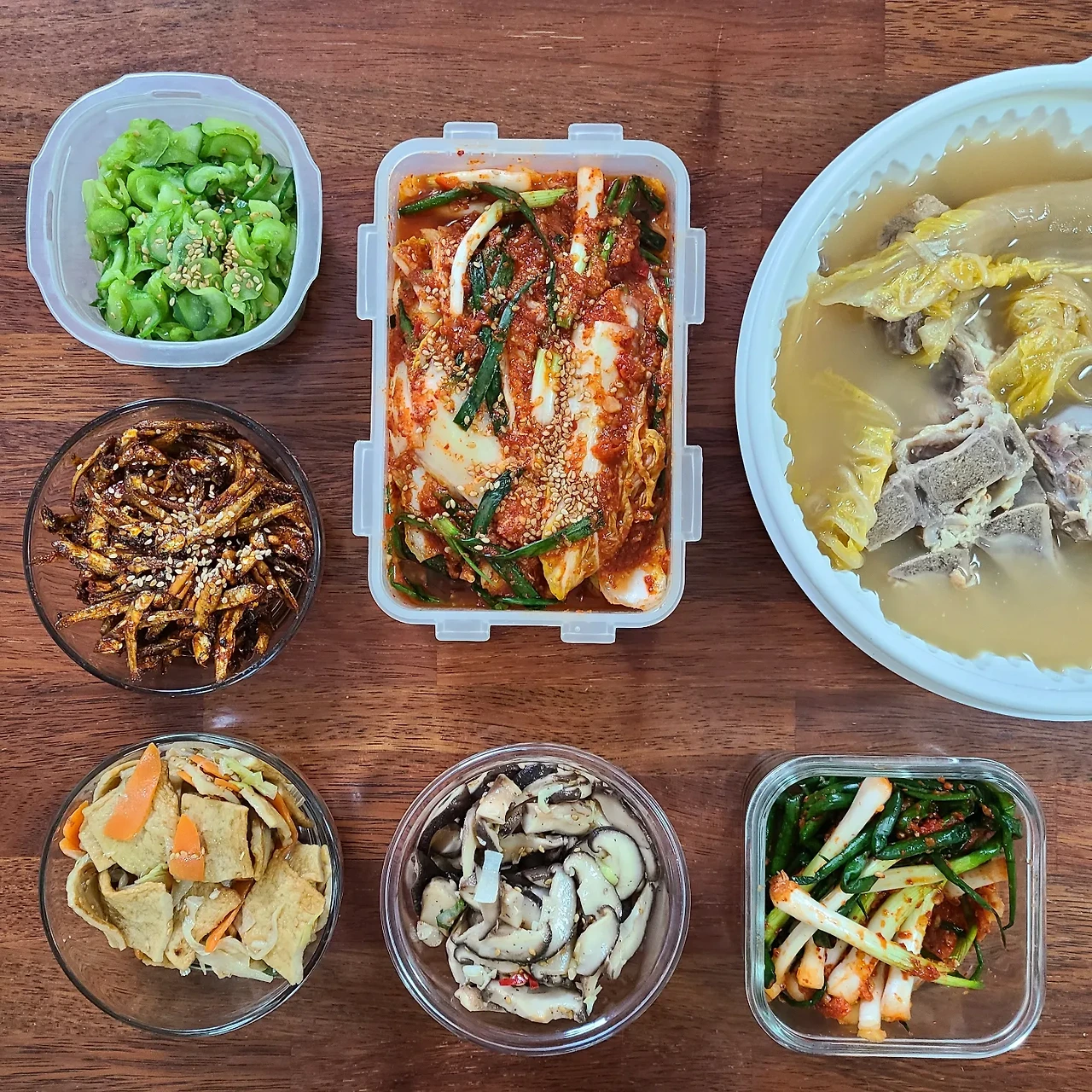 이여사표 반찬과 국들. 아이들은 '건전한 맛' 이 난다고 표현했다.