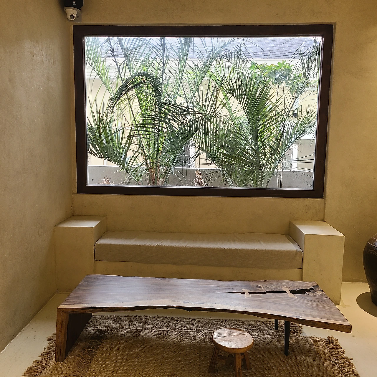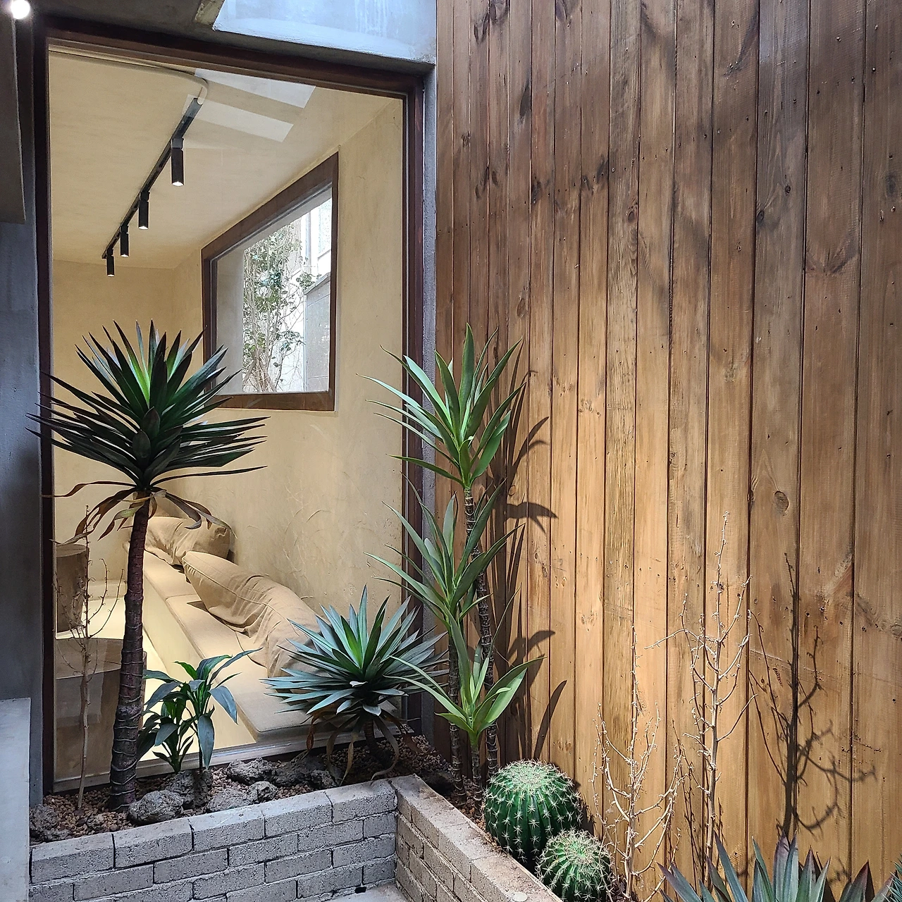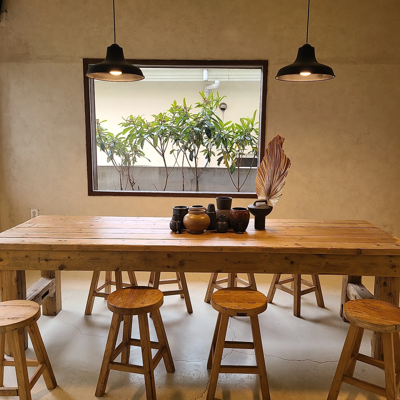 주문을 받는 곳은 아래 건물이었다. 문을 열고 들어서자마자 '커알못'도 느껴지는 향긋한 원두향. 지금까지 이렇게 심심하고 단조로운 인테리어는 없었다. 이것은 나무인가 가구인가 싶은 탁자와 의자들이 적당한 간격으로 배치되어 있었다. 손님은 우리 둘 뿐이었다.