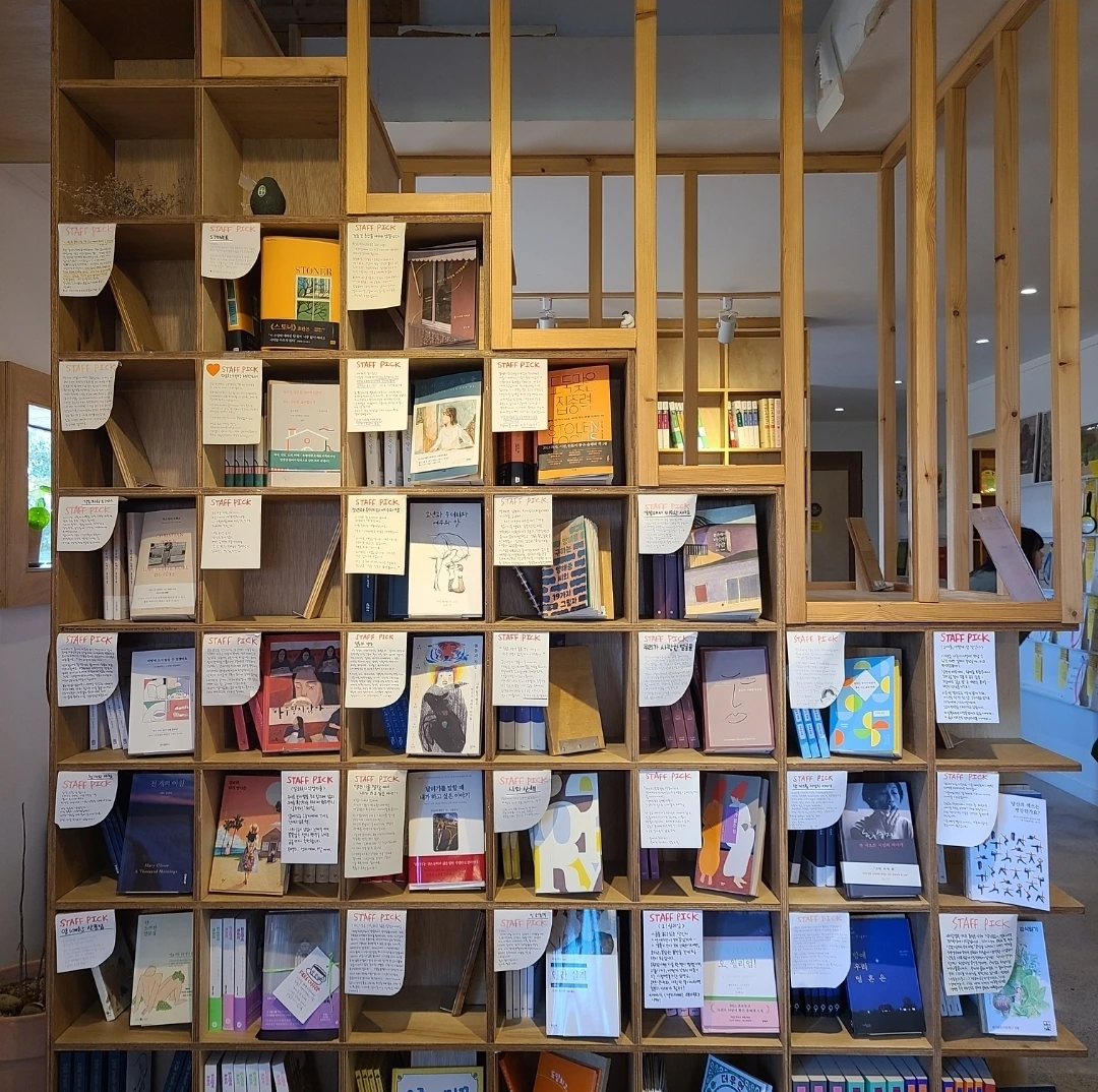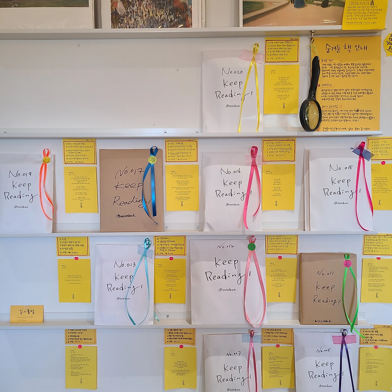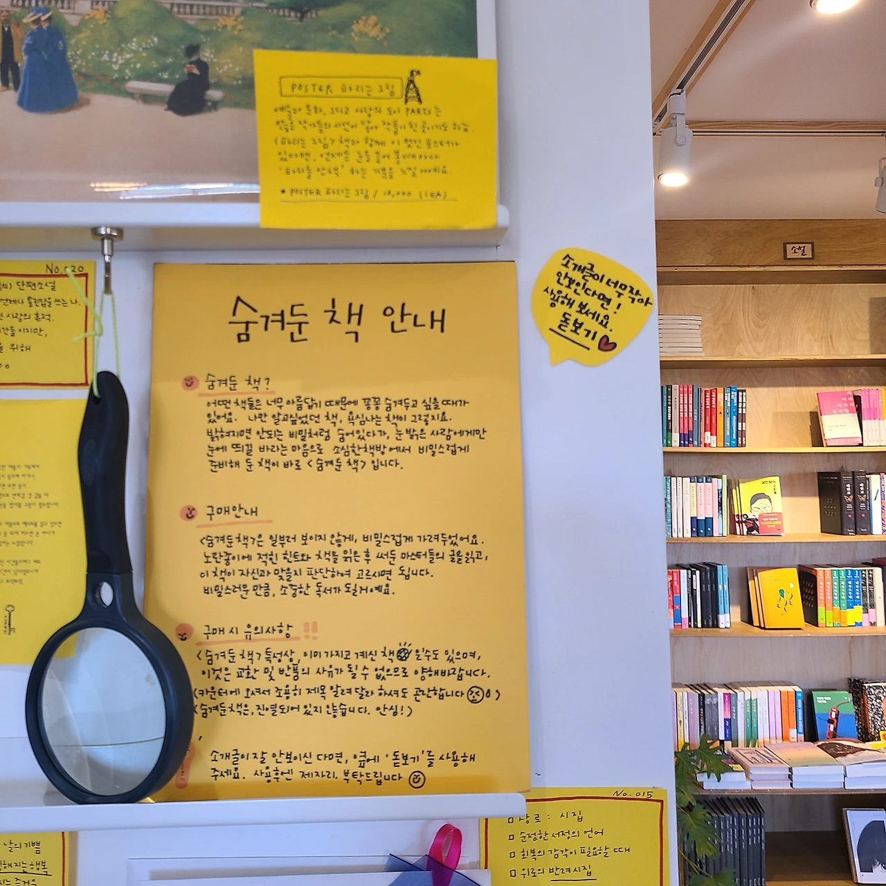 푸릇푸릇 봄이 보이는 창 안쪽으로 세심한 배려들이 가득했다. 숨겨둔 책을 돋보기로 자세자세 살펴보고 책방지기의 큐레이션을 가만가만 읽었다. 읽은 책은 아는 얼굴을 만난 듯 반가웠고 안 읽은 책에는 덜컥 호기심이 일었다. 독서모임에서 읽었던 책들은 멤버분들에게 공유하고 싶어 일부러 폰에 담았다. 아는 척을 하고 싶어서 책을 읽기 시작했는데, 아는 책들을 만나는 우연은 농도 짙은 즐거움이었다.