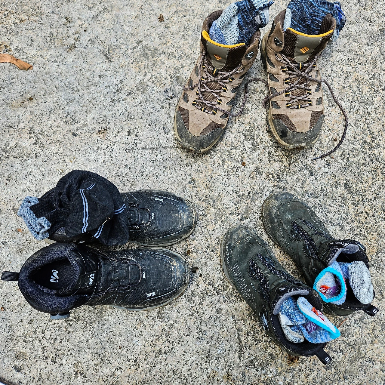 발에 딱 맞는 등산화도 문제였다. 내리막길에 발이 앞으로 쏠리고 두꺼운 등산 양말까지, 발가락이 너무 아팠다. 괜히 왔어 오지 말걸이라는 마음이 가득 차 툴툴 거리는 순간, 주르륵 길게 미끄러졌다. 이게 다 그놈의 제철 숙제 때문이야!