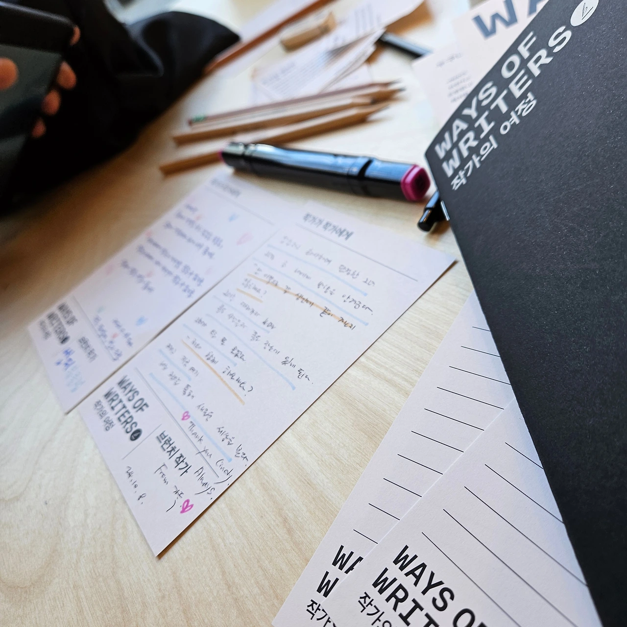 '작가가 작가에게'라고 적힌 종이에 서로에게 짧은 편지를 쓰고 맞바꾸었다. 덕분에 이런 곳에도 와 보네요, 이런 행사에도 참여해 보네요, 유난히 자주 짓는 미소에 나 또한 행복해졌다.