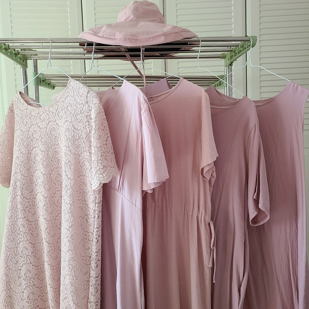 연분홍과 진분홍, 혹은 인디핑크와 핫핑크가 난무하는 옷걸이에 가족들은 질색을 했다. 마음에 들어 하나하나 사 모은 비슷하면서도 (내 눈에는) 확연히 다른 원피스들이 많긴 많았다. 셔츠도 분홍 계열이 가장 많다.