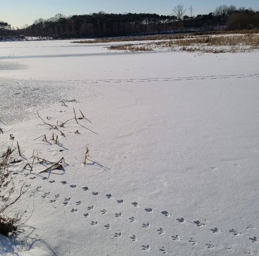 □ 눈이 쌓여 있는 장소에 남겨진 새 발자국 찾아보기