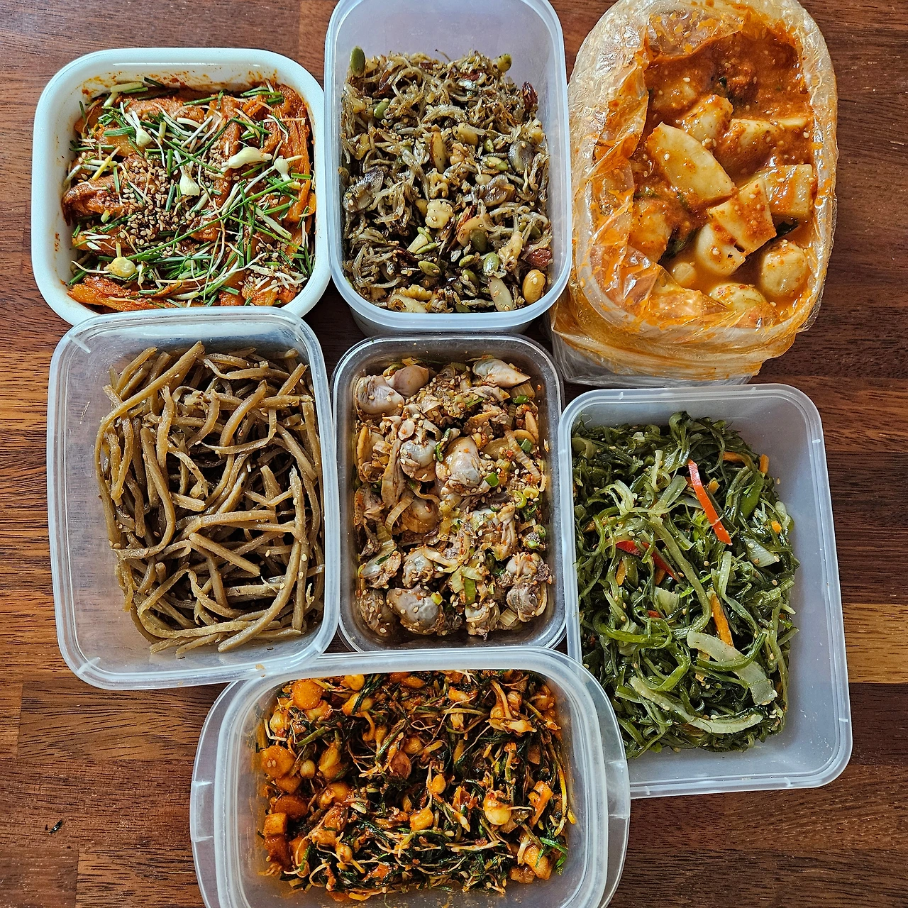 남편이 어머님과의 통화에서 달래무침 맛있더라고, 또 보내달라고 했다기에 등짝을 치며 혼을 냈다. 힘드신데 일 시켰다고. 아니나 다를까, 어머님표 반찬들이 도착했다. 뭘 이리 많이 보내셨나 구시렁대면서도, 자식들 입에 들어갈 상상을 하며 즐겁게 만드셨길 바란다. 힘은 들더라도 아직은 이 정도는 하실 수 있을 정도의 정정함에 감사하다. 포장을 뜯고 반찬 사진을 찍고 밥을 한 공기 떴다. 반찬 하나씩 덜어서 맛있게 냠냠. 한 공기 더 펐다. 어머님, 이러시면 안 돼요. 저 버릇 들어요. 네? 저 말고 아범 먹으라고 보내신 거라고요? 아 네.