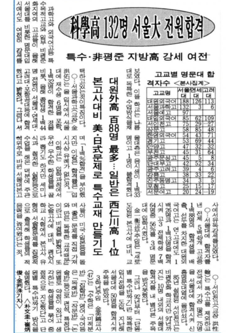 나고 자란 도시 인천에서 초중고를 졸업했습니다. 중학교 때까지 날고 기던 저는 이 도시의 모든 날고 기는 학생들이 모인 고등학교에 진학했습니다. 도시 외곽에 위치한 '자립형 사립 고등학교'. 외고를 경쟁 상대로 정해 서울대 연고대 합격자 수를 늘려가며 명성을 높여가는 중이었지요. 제가 입학할 즈음에는 '서울대 75명 합격' 플래카드가 교문 앞에 떡 하니 붙어 있었고요. (지금도 인천 출신 제 또래 중년들은 "아, 그 학교!"하고 알 정도입니다.)