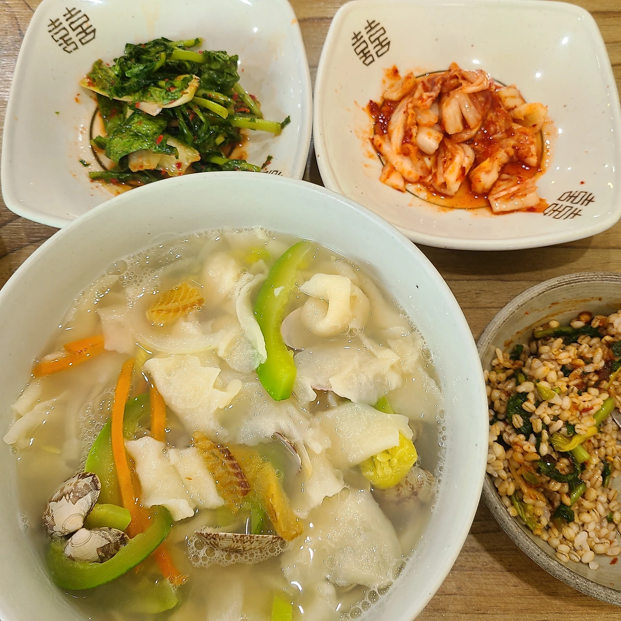 요 며칠 전부터 어찌나 먹고 싶었던지. 수제비가 나오기 전 나온 보리밥의 보리들은 탱글탱글 윤기가 흘렀다. 갓 따온 열무로 담그신 건지, 함께 나온 열무김치는 아삭아삭하고 싱그런 향이 났다. 그냥도 집어 먹고 보리밥에 넣어 고추장과 비벼 먹었다. 맛있었다.