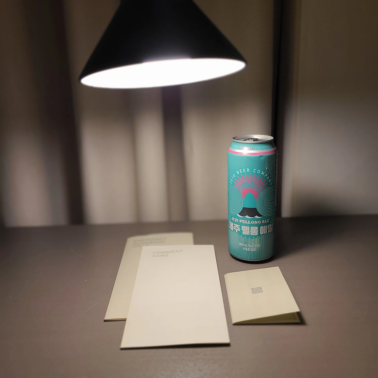혹시나 싶어 편의점 들렀을 때 하나 챙긴 제주맥주 한 캔. 역시나 나이스 초이스. 챙겨 온 책을 읽으며 한 모금 마시며 웃으며 울컥하며. 제주도의 푸른밤은 짧고도 짧기만 하다.