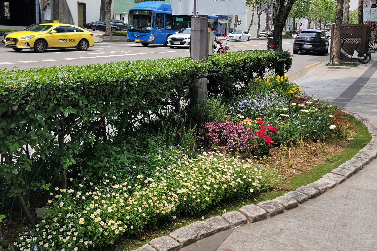 청담동명품거리의 화단에 꽃이 예쁘게 피어있어서 사진을 찍었네요.