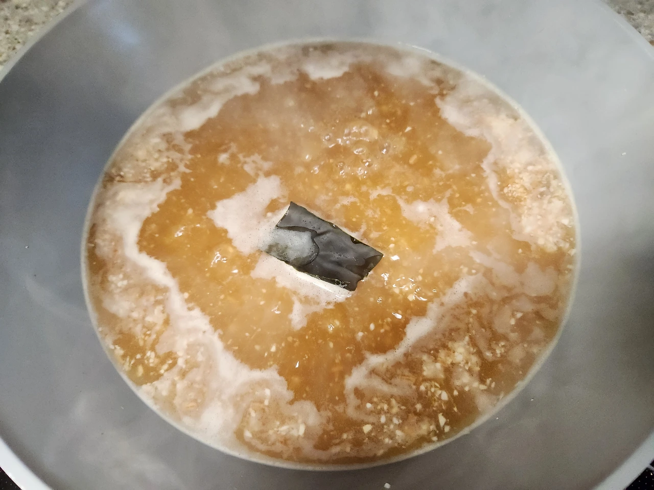 5. 된장물이 끓어오르면 다시마 1조각을 넣고 5분 후 건져준다.