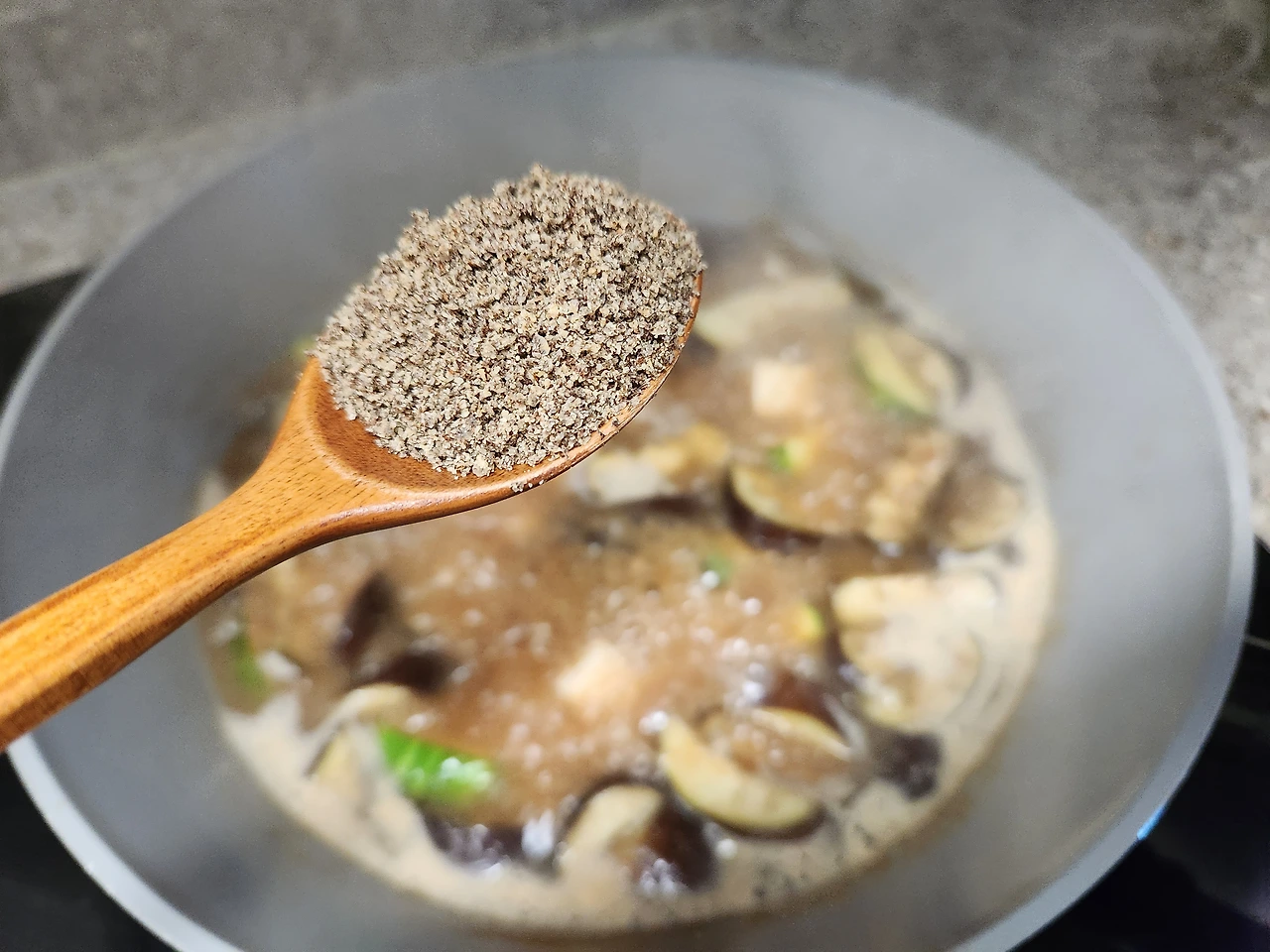 7. 들깨가루 3T를 넣고 잘 저어준 뒤 불을 끈다.