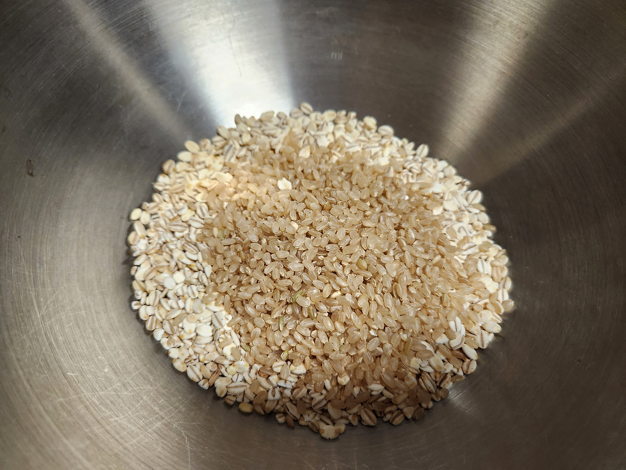 1. 늘보리 압맥, 칼집 현미를 씻어 불려둔다.