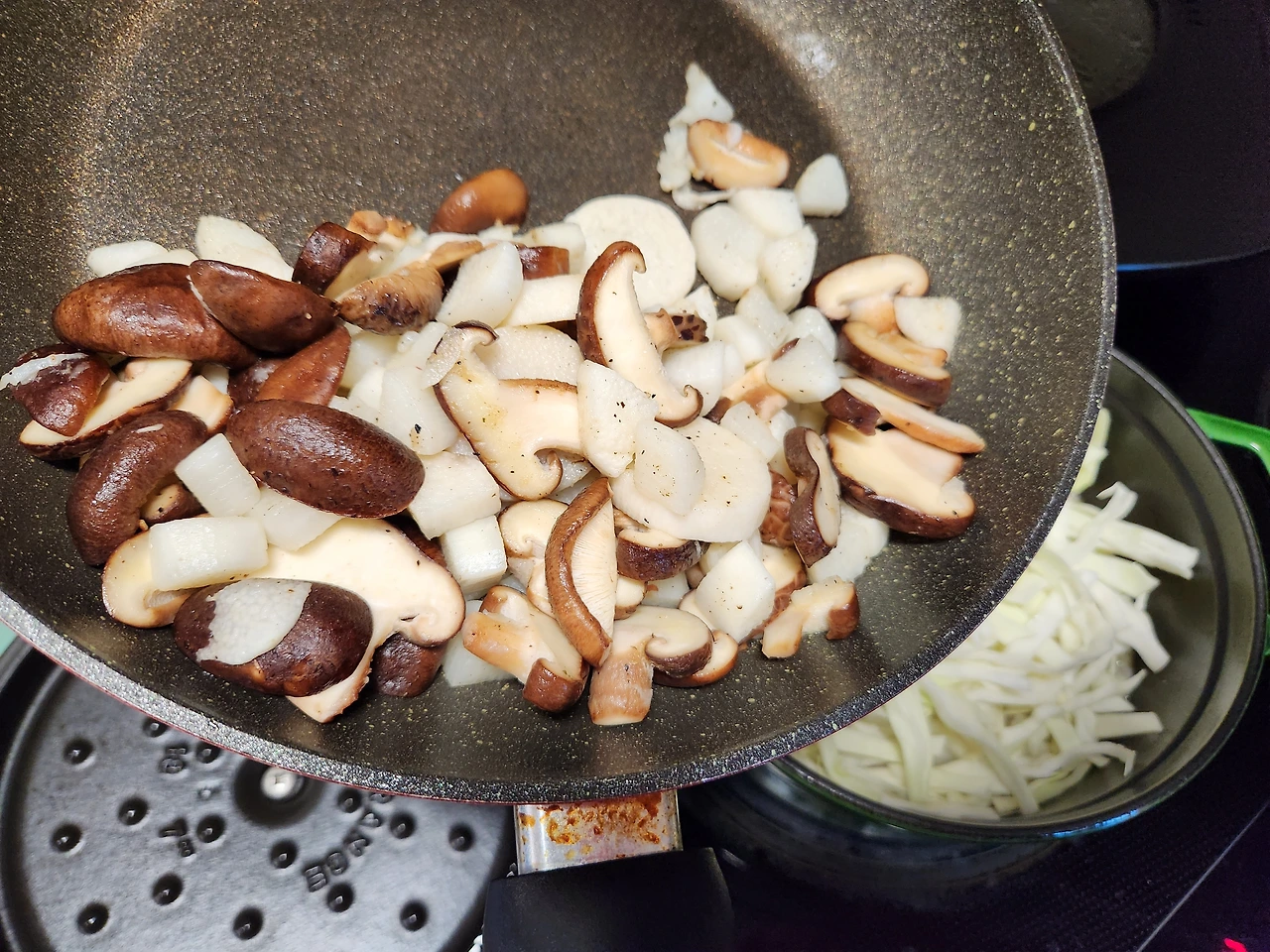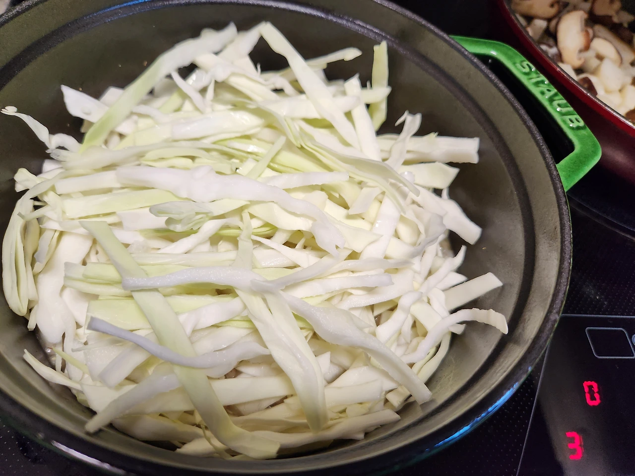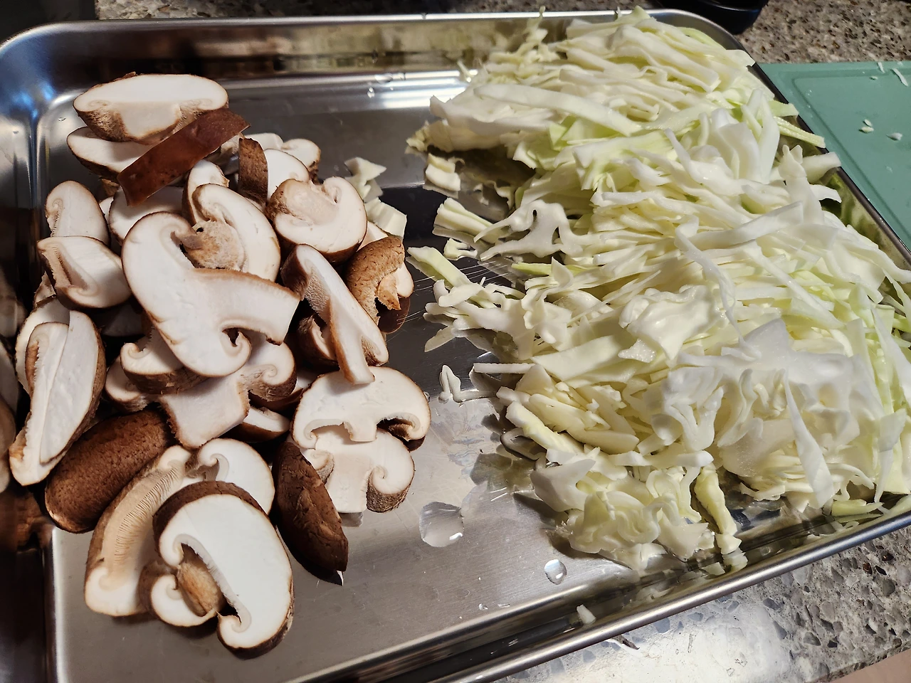 3. 버섯은 편 썰고 양배추는 채 썰어준다.