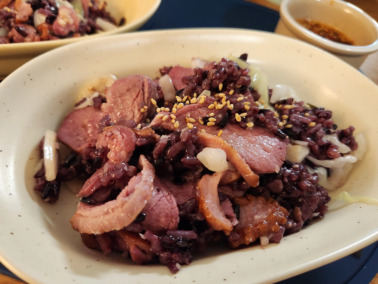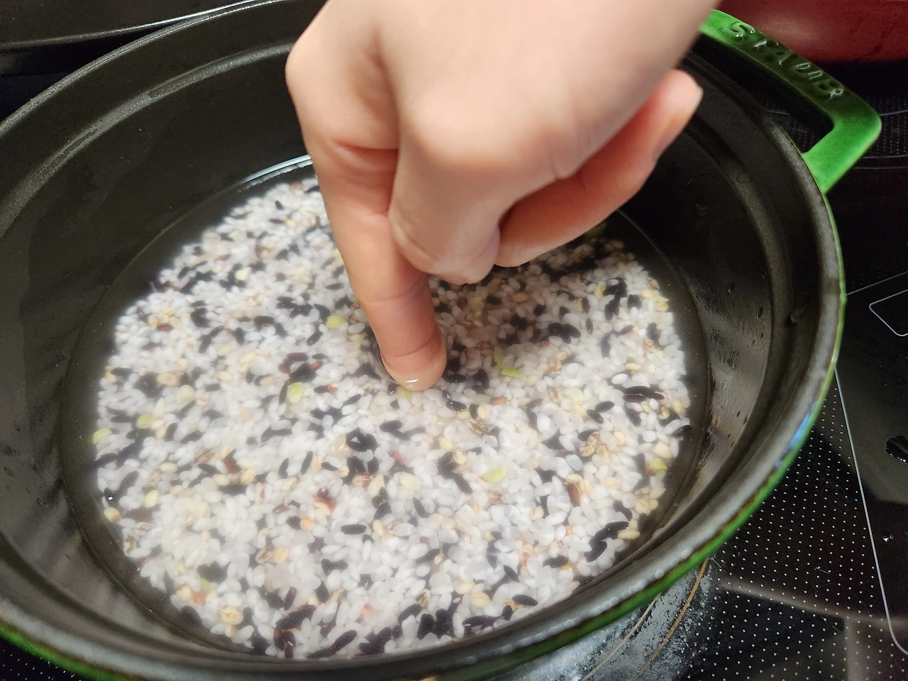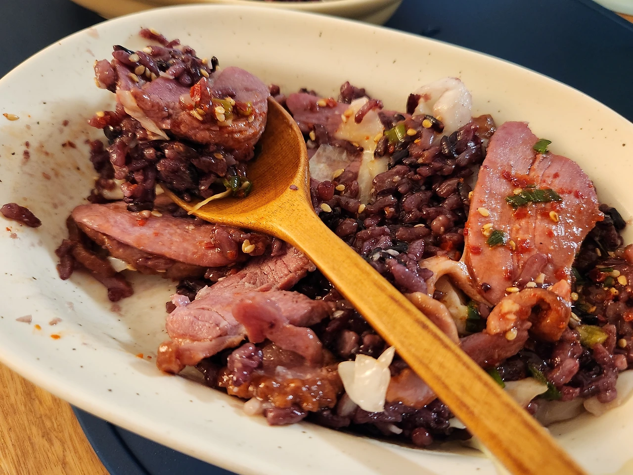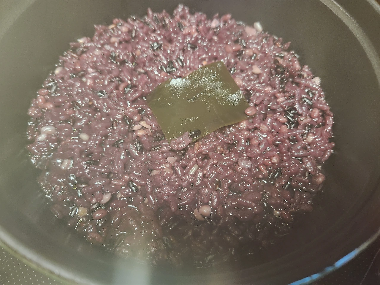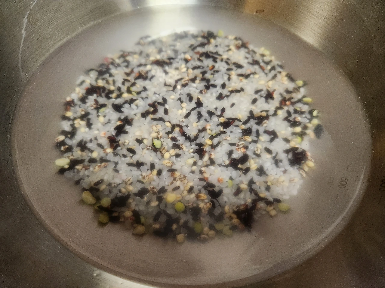 1. 오늘은 왠지 찰기 도는 찰흑미와 조선향미가 당기는 날이다. 보통날은 현미, 보리 통곡물밥을 먹지만 가끔은 원하는 잡곡과 맛과 향이 좋기로 유명한 조선향미 백미를 1:1로 섞어 밥을 짓는다. 찰흑미, 백미를 씻어 10분 이상 불린다.(당뇨식단 중인 분들은 백미는 혈당이 많이 오르니 지양하고 찰흑미 비율을 높이거나 늘보리압맥, 칼집현미와 섞어 먹는 것이 좋다.)